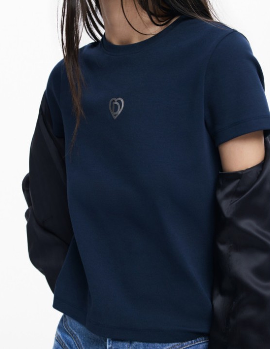 Apresenta gola redonda e aplicação com logótipo, oferecendo um detalhe elegante para um look casual.