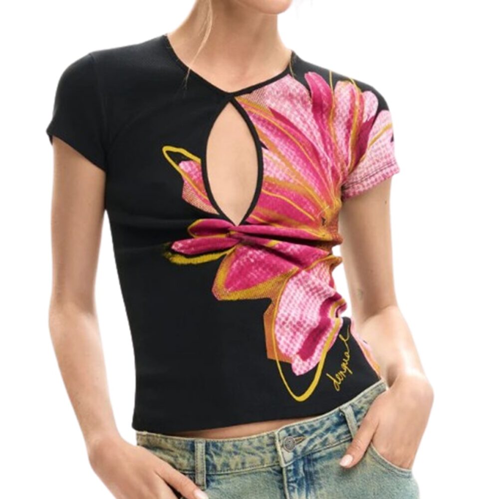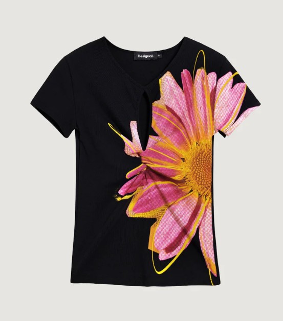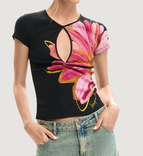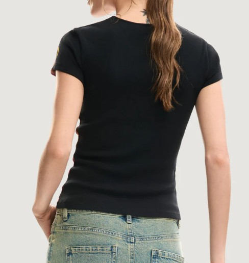 Apresenta decote em V, detalhes contrastantes e estampa com logótipo, ideal para um look casual e atual.