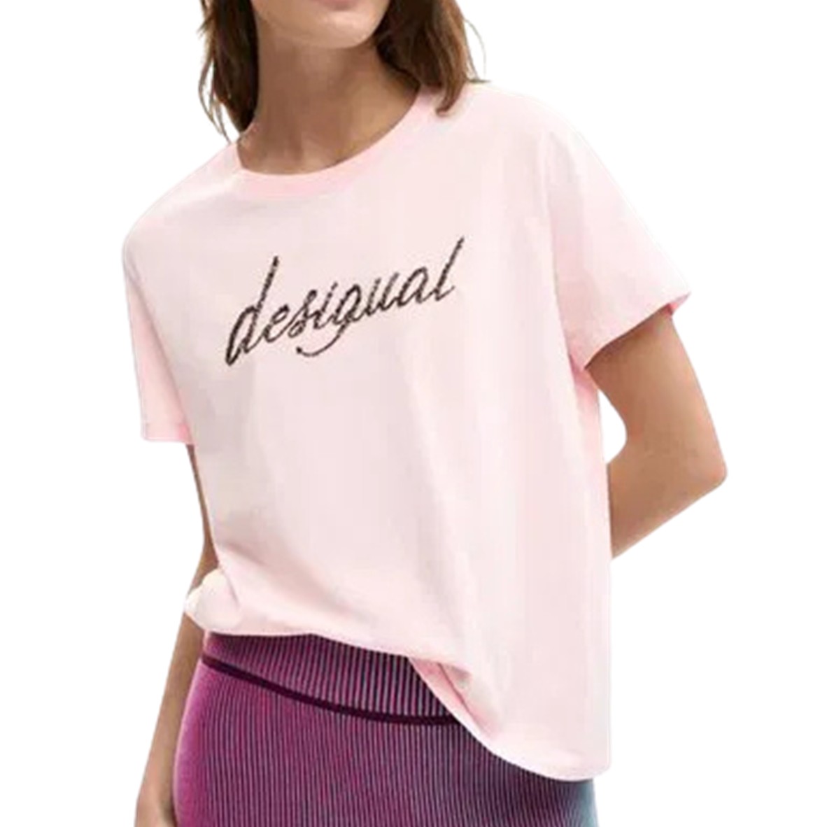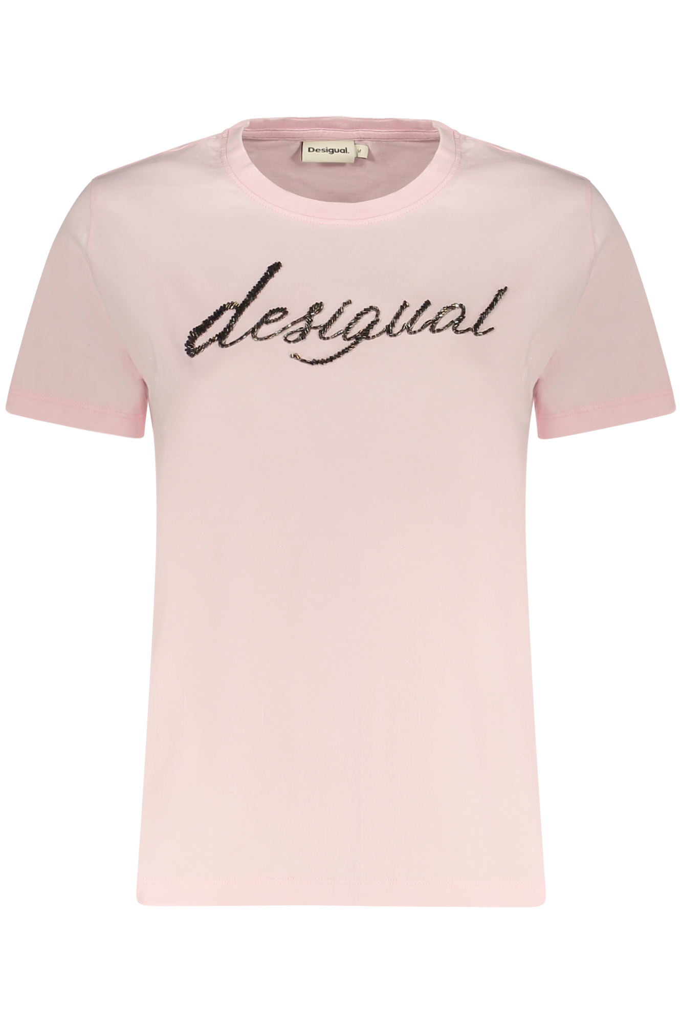 Apresenta gola redonda, aplicação de miçangas e logótipo, conferindo um detalhe sofisticado ao visual.