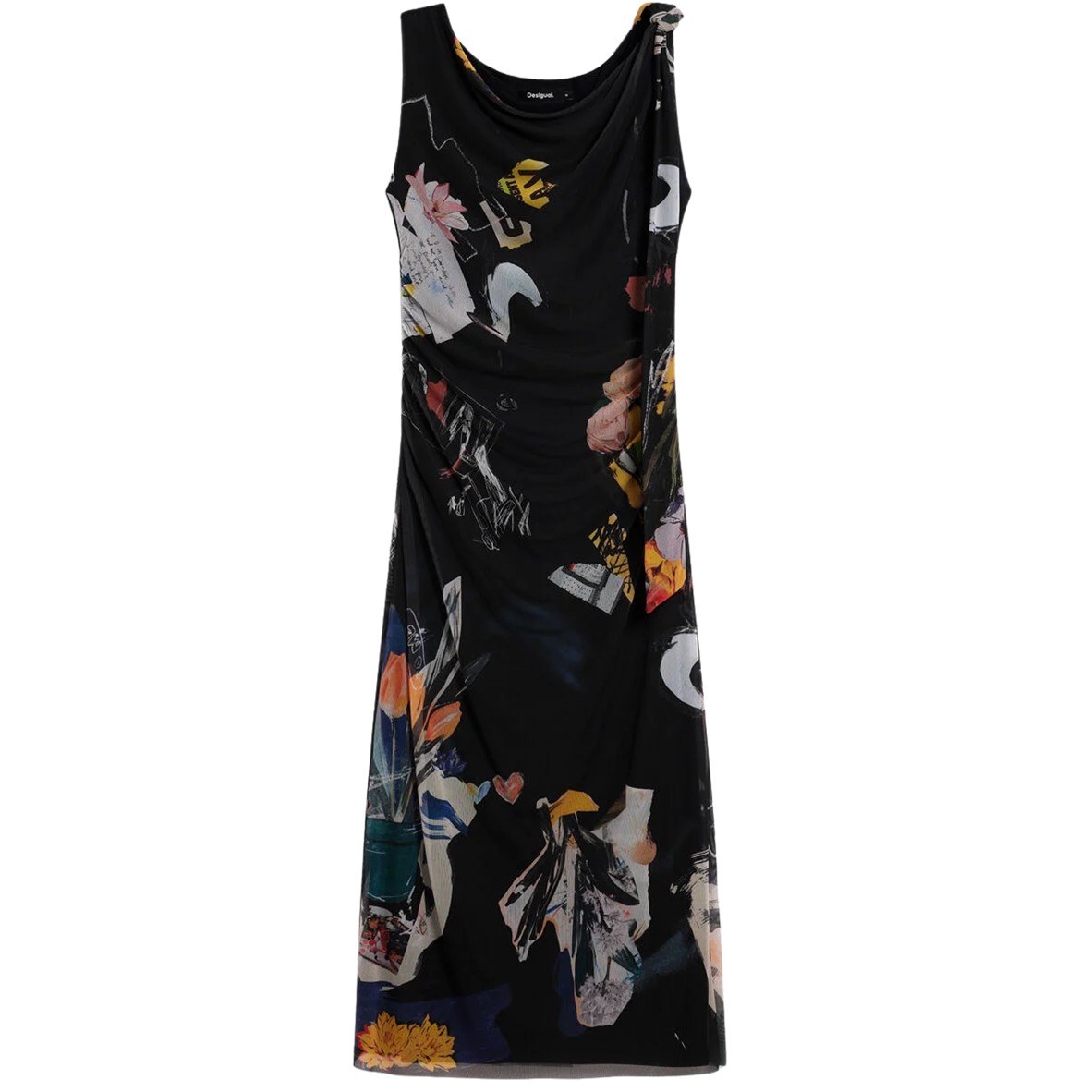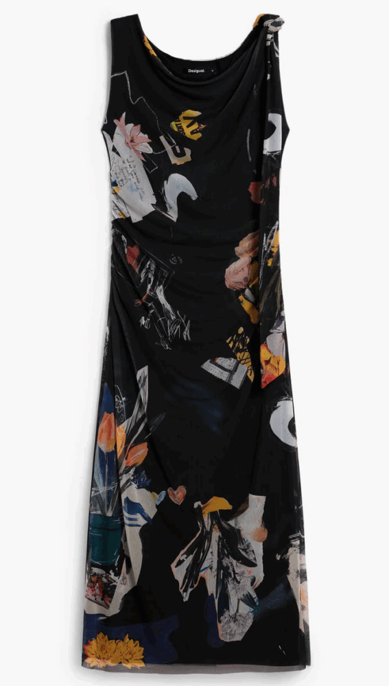 Apresenta alças largas, decote canoa, detalhes contrastantes e estampa com logótipo, ideal para um look sofisticado e confortável.