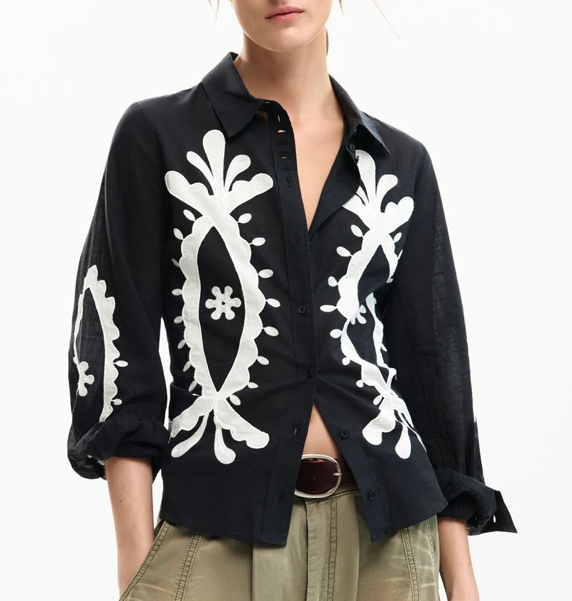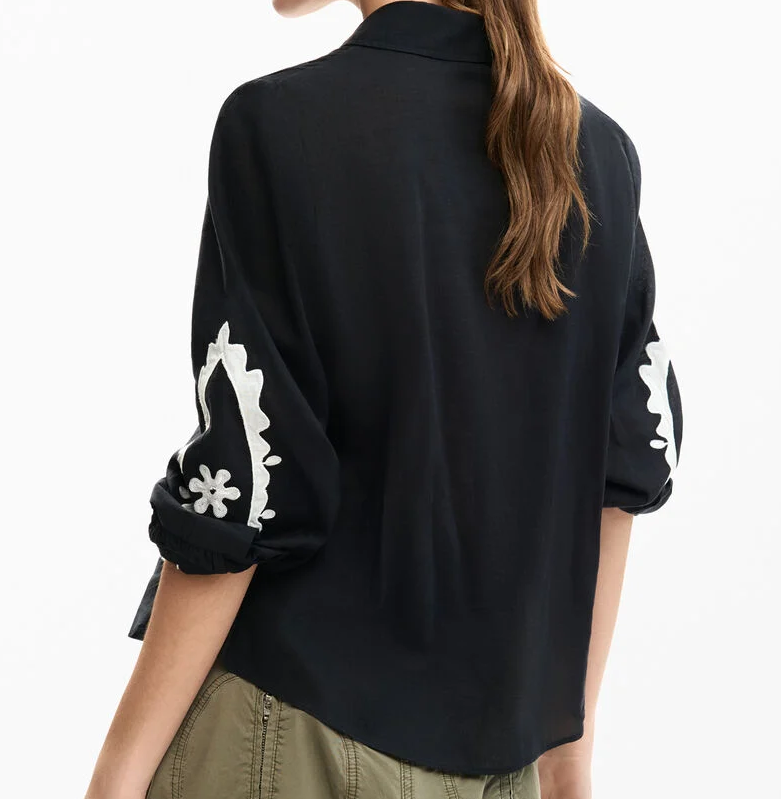 Apresenta punhos com 1 botão, botões frontais, bordado e logótipo, ideal para um look elegante e casual.