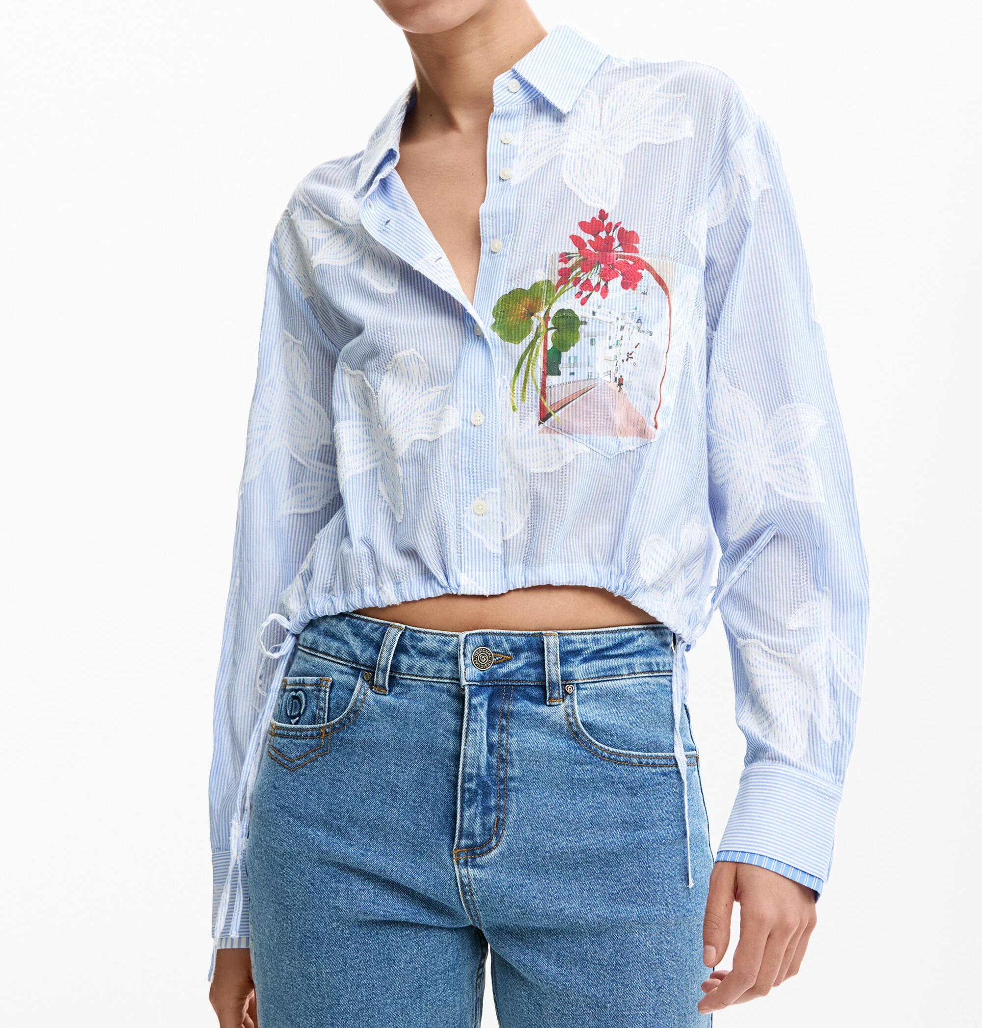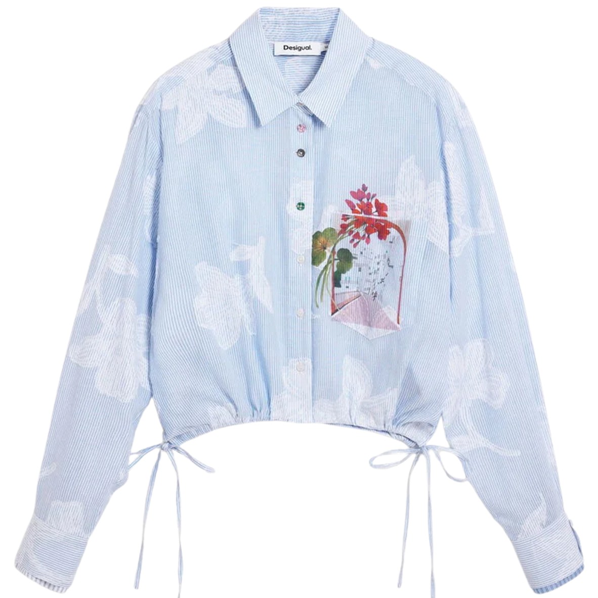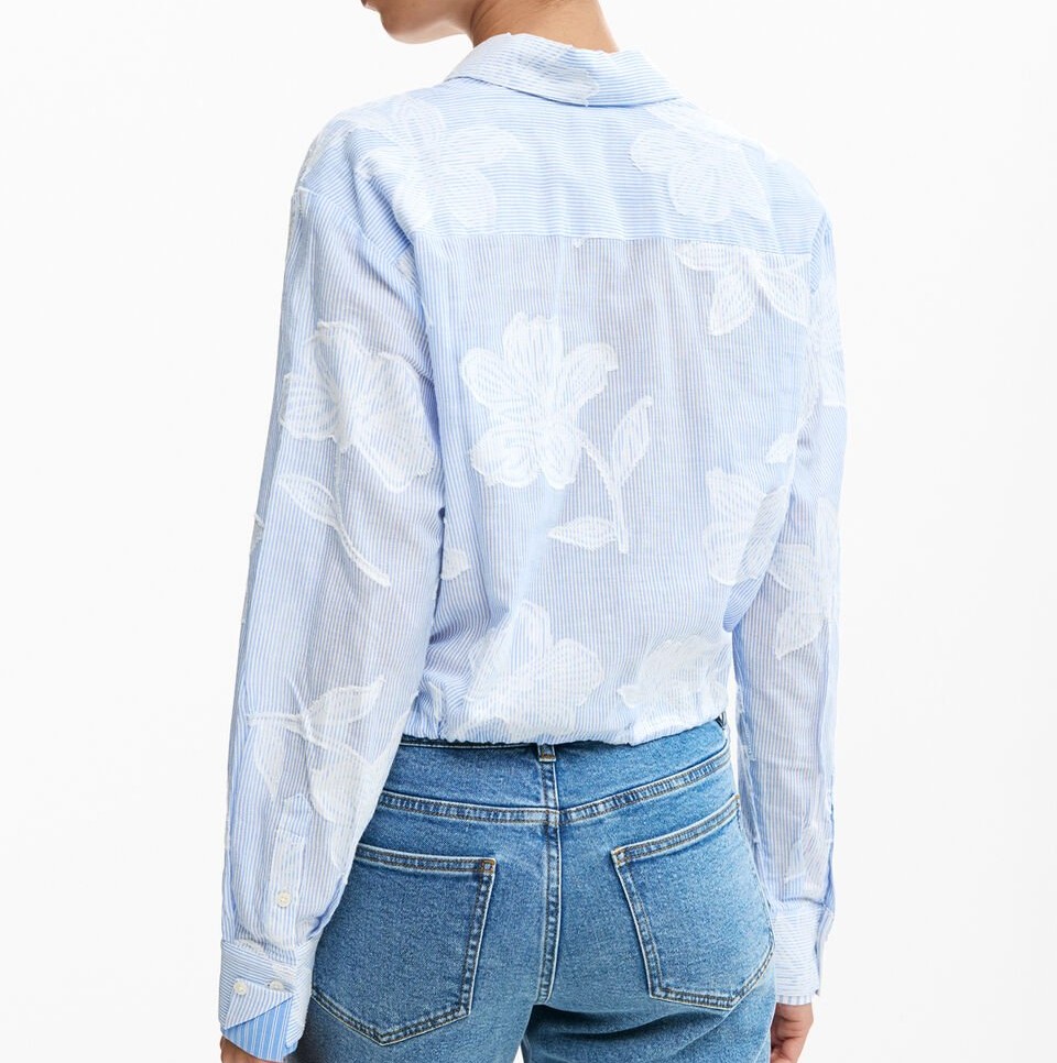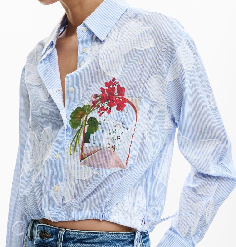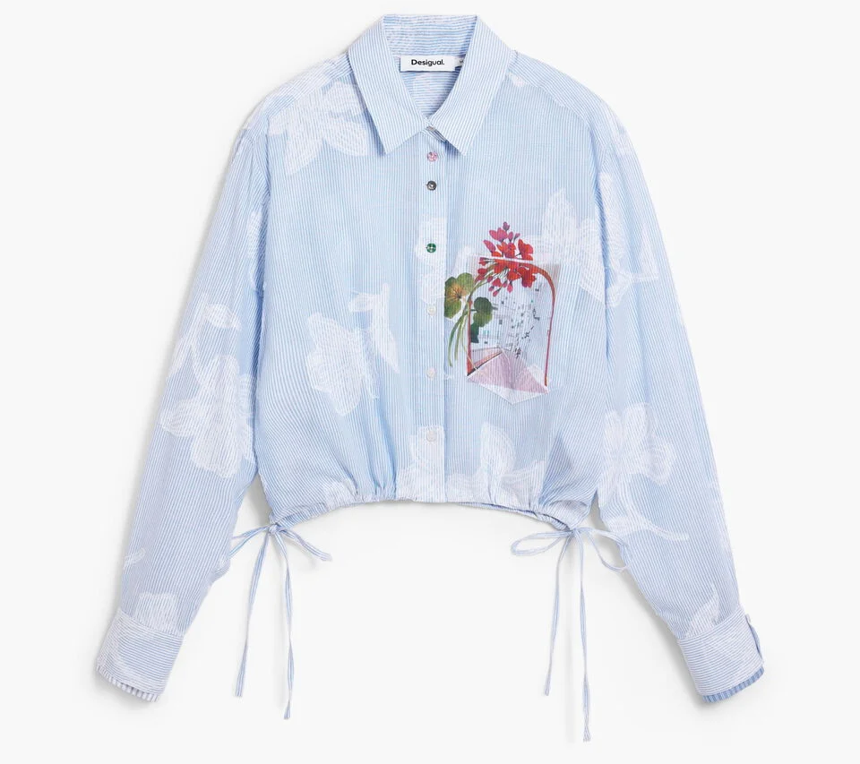 Apresenta 1 bolso, punhos com 1 botão, botões frontais, estampa e logótipo, ideal para um look casual e elegante.