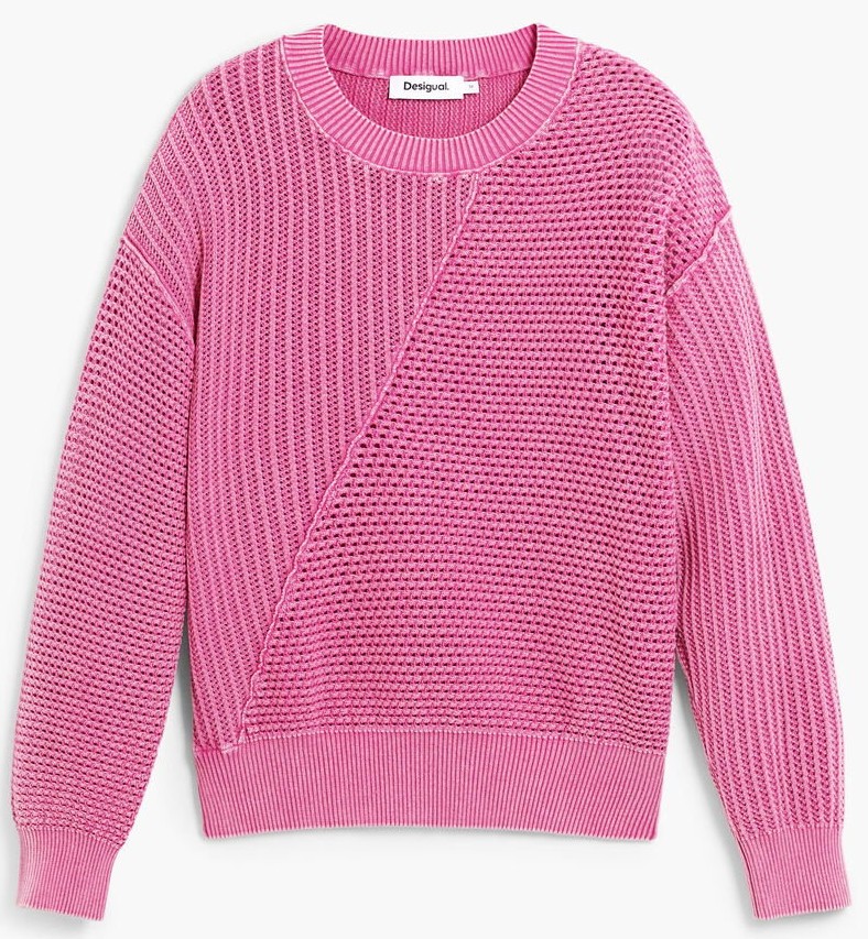 Apresenta gola redonda, detalhes contrastantes, bordado e logótipo, ideal para um look casual e elegante.