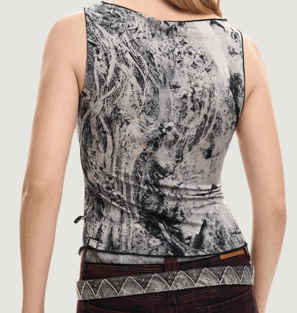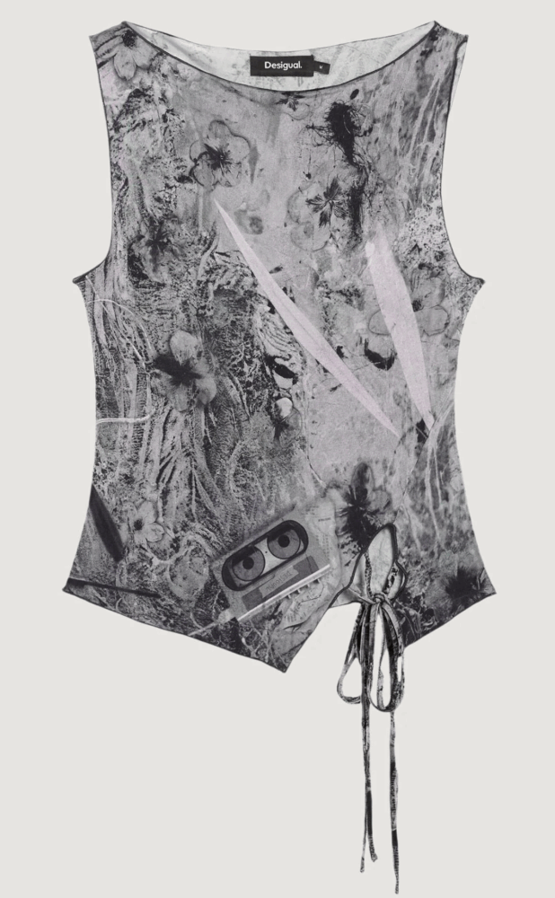 Apresenta gola redonda, detalhes contrastantes e logótipo, ideal para um look casual e fresco.