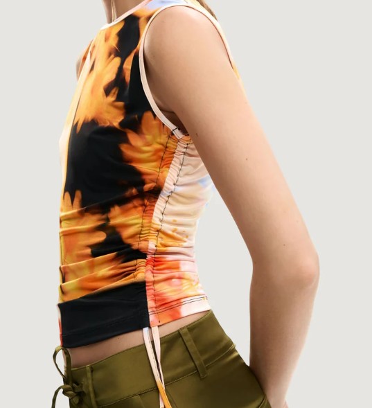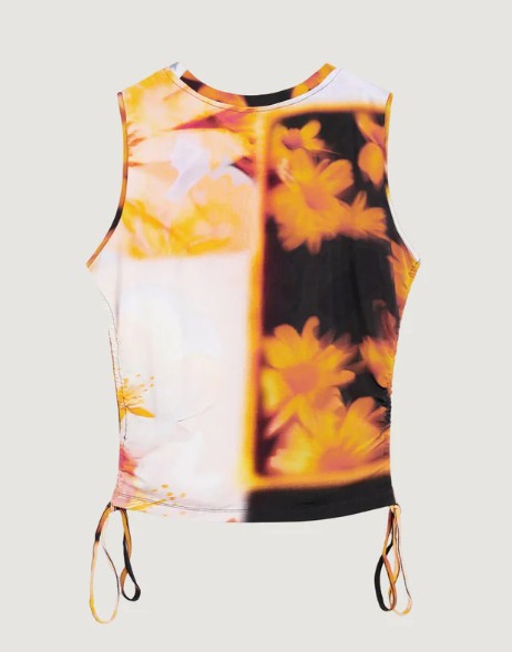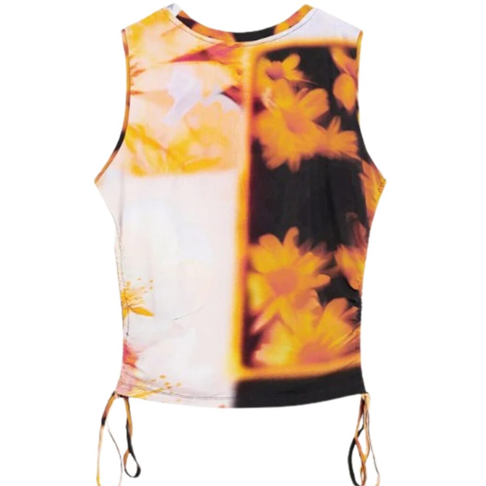 Apresenta gola redonda, detalhes contrastantes e logótipo, ideal para um look casual e fresco.