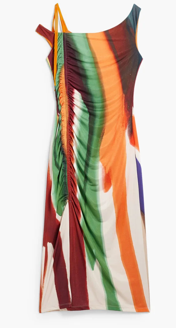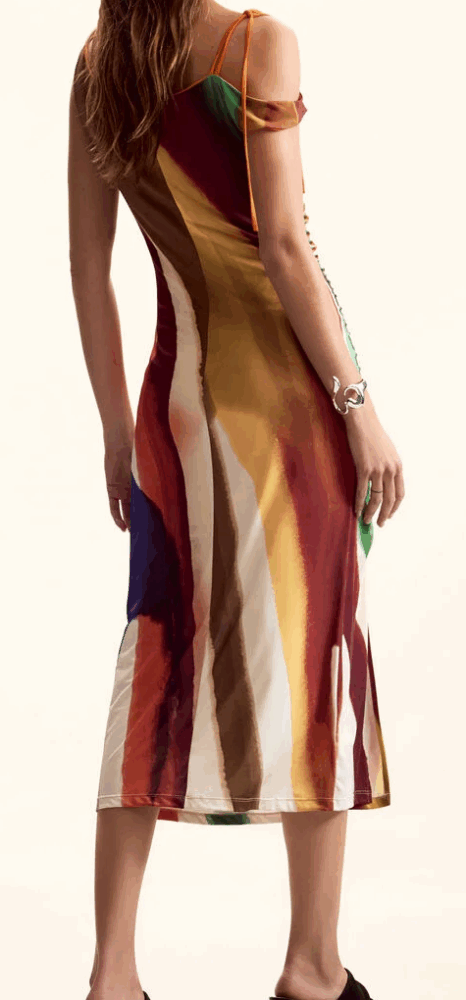 Vestido longo estampado Paint Lacroix com design elegante e fluido.