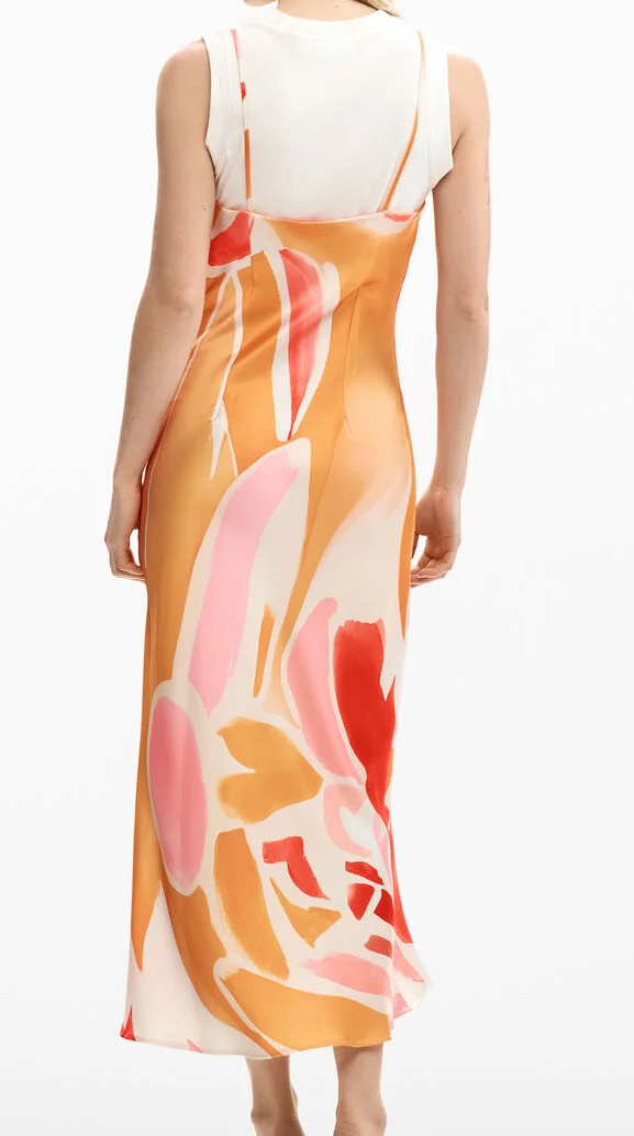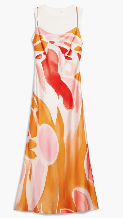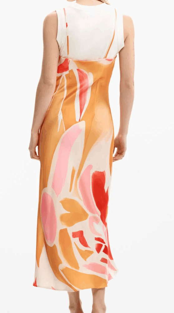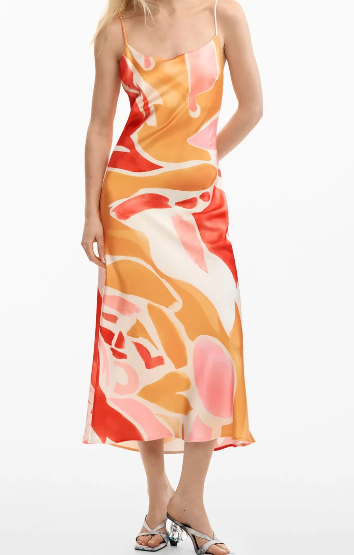 Apresenta blusa regata de gola redonda, alças finas ajustáveis, decote canoa, estampa de ondas e logótipo, ideal para um look sofisticado e moderno.