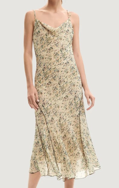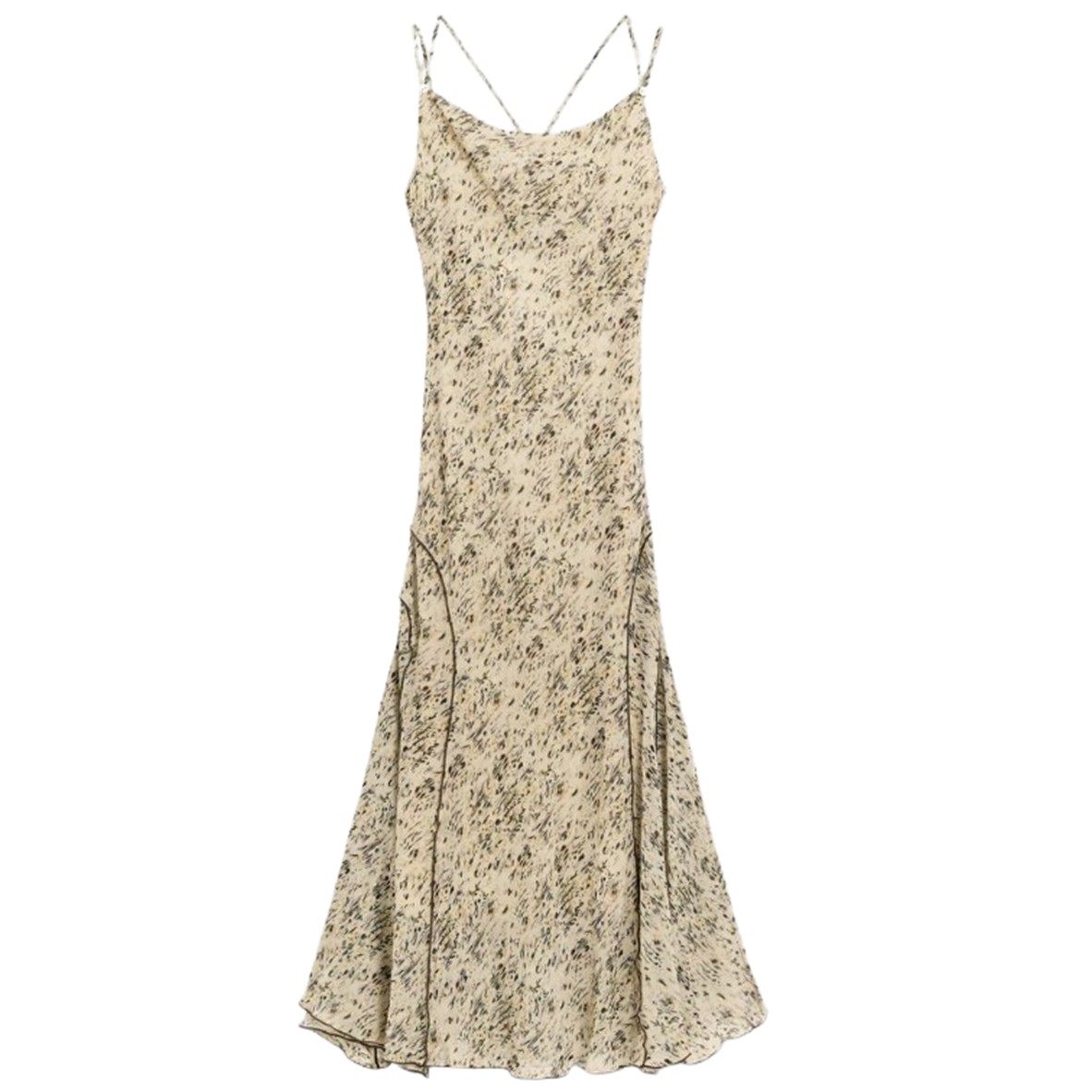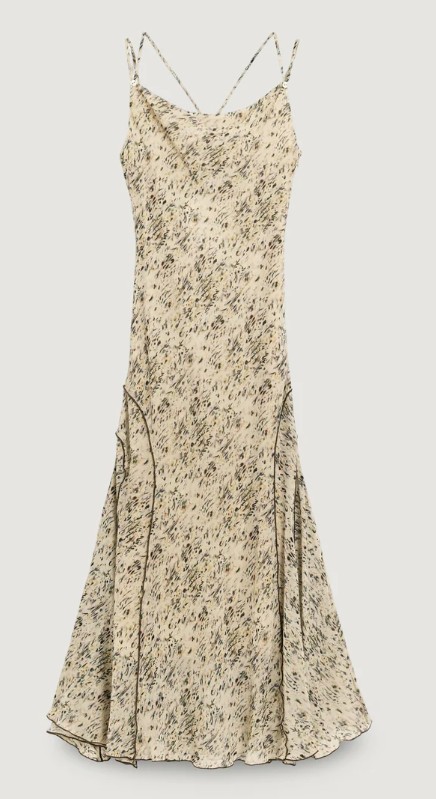 Vestido longo estampado estilo grunge com design moderno e fluido.