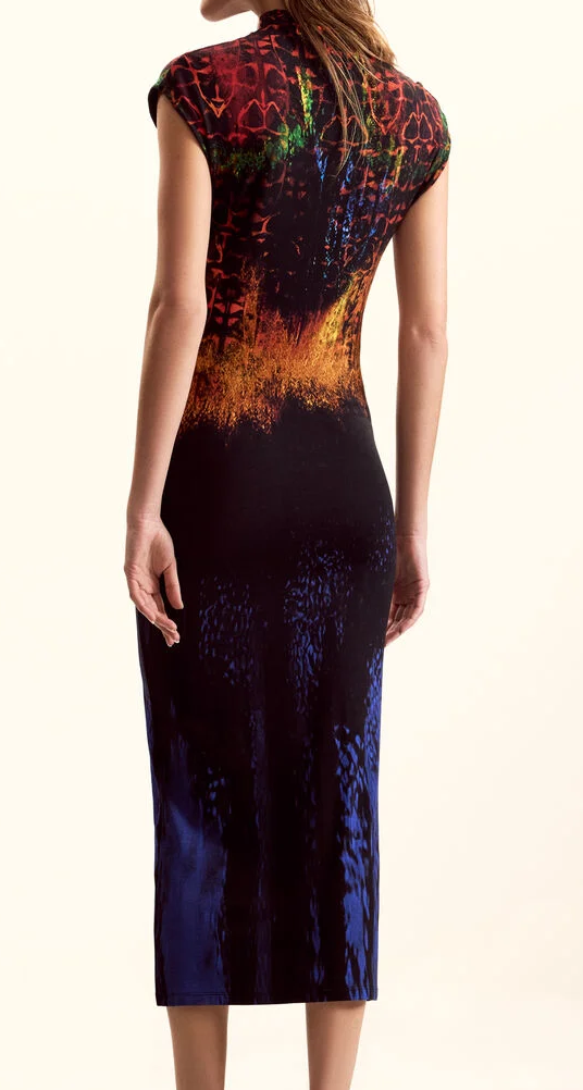 Vestido comprido sem mangas Psycho Animal Lacroix com design elegante e fluido.