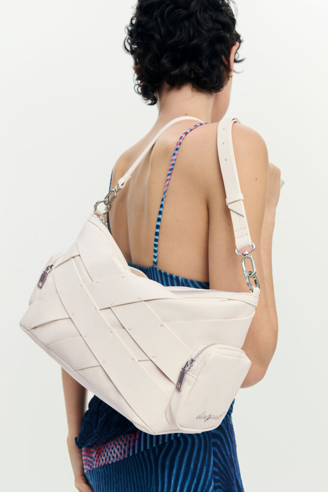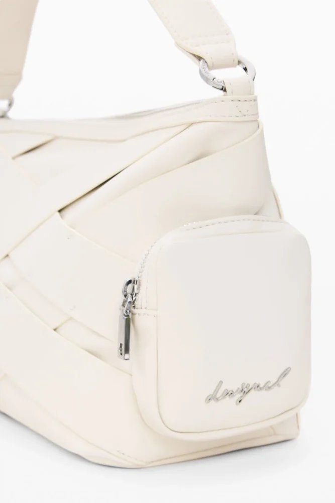 Apresenta 1 pega de ombro amovível, 1 alça de ombro ajustável e amovível, 2 bolsos laterais exteriores, 1 bolso interior, espaço interior para cartão, fecho de correr, detalhes contrastantes e logótipo, ideal para o uso diário com praticidade e estilo.