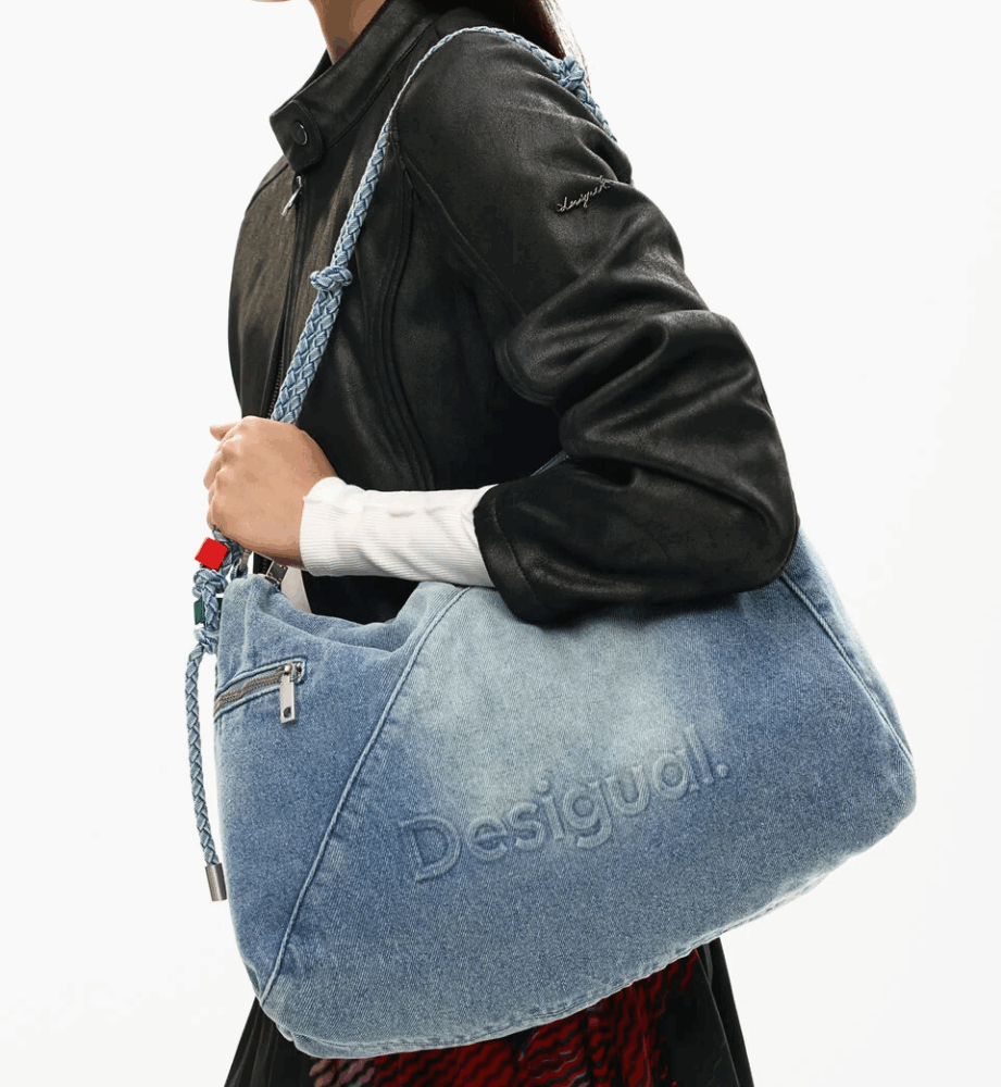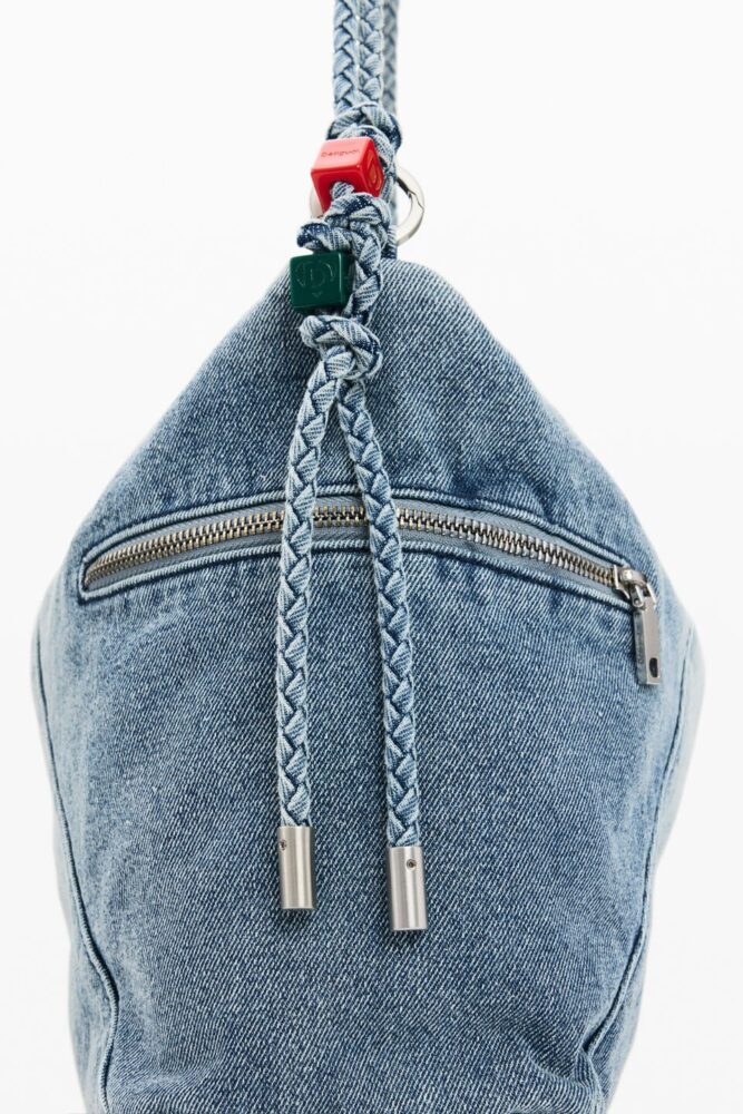 Saco Leiria 2.0 em ganga com meio logótipo e design moderno.
