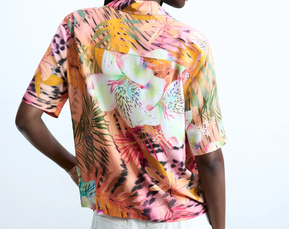 Apresenta decote em V, estampa temática Nassau e logótipo, ideal para um look casual e descontraído.