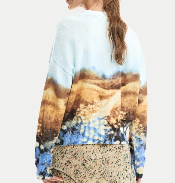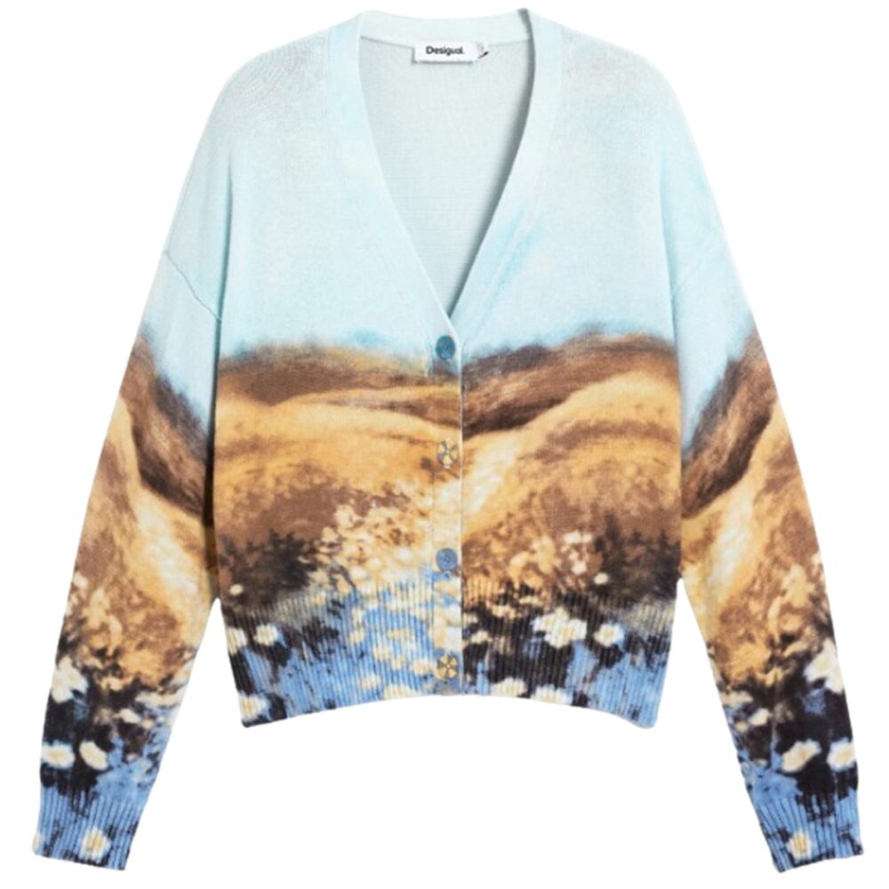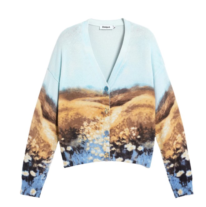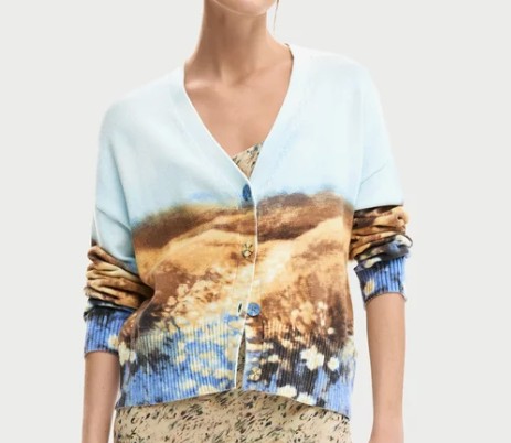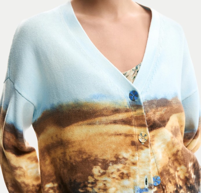 Apresenta malha respirável, decote em V, botões estampados e logótipo, ideal para um look casual e sofisticado.
