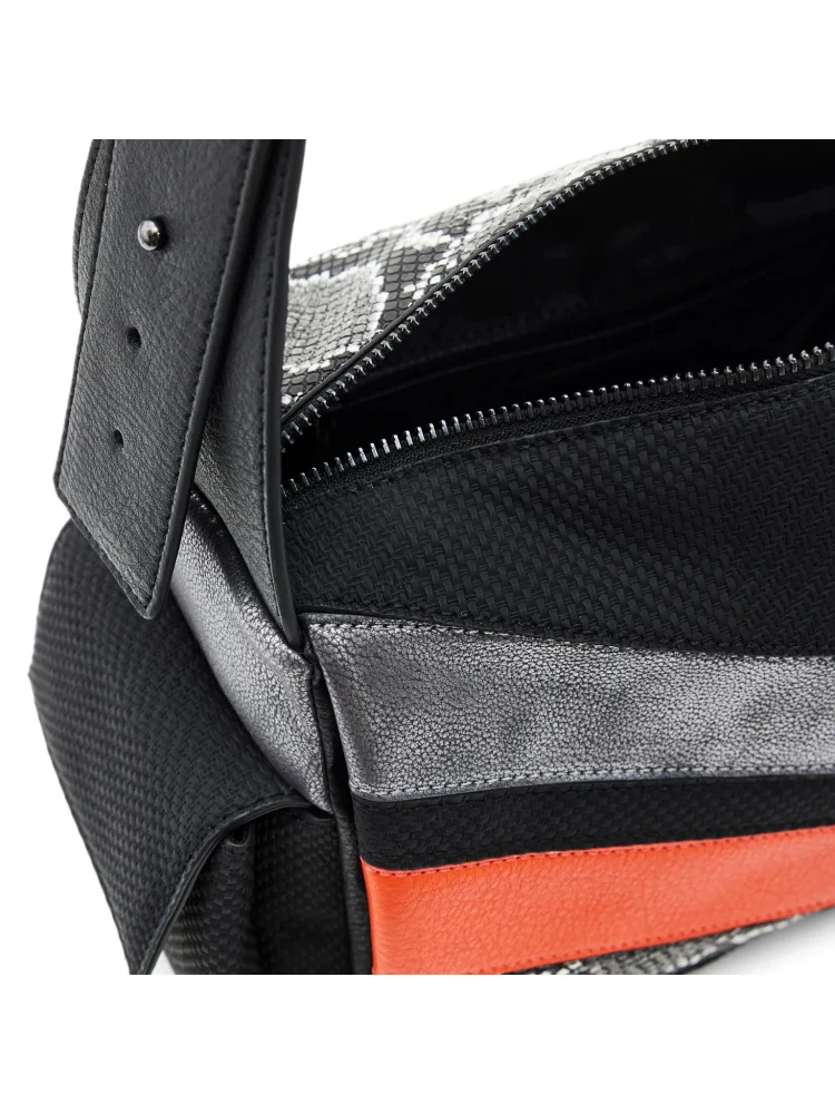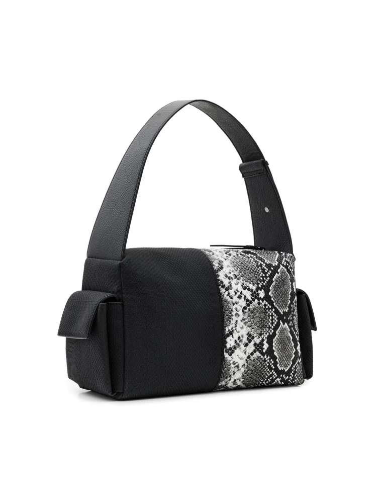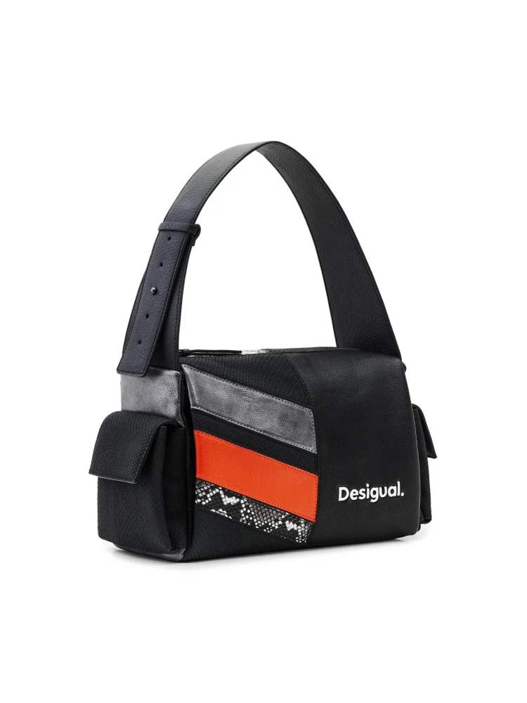 Mala com alça de ombro ajustável, 2 bolsos laterais externos, 1 bolso interno, detalhes contrastantes, fecho zíper, logótipo.