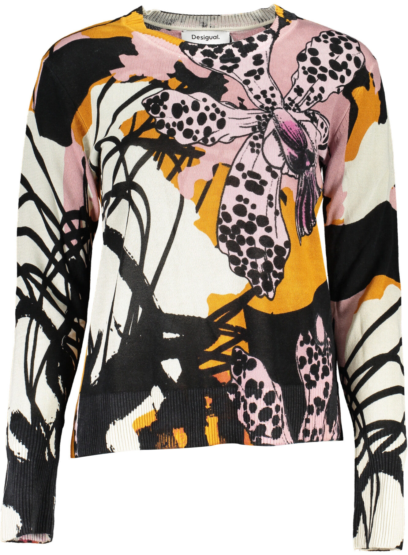 Suéter padrão, mangas compridas, gola redonda, logotipo