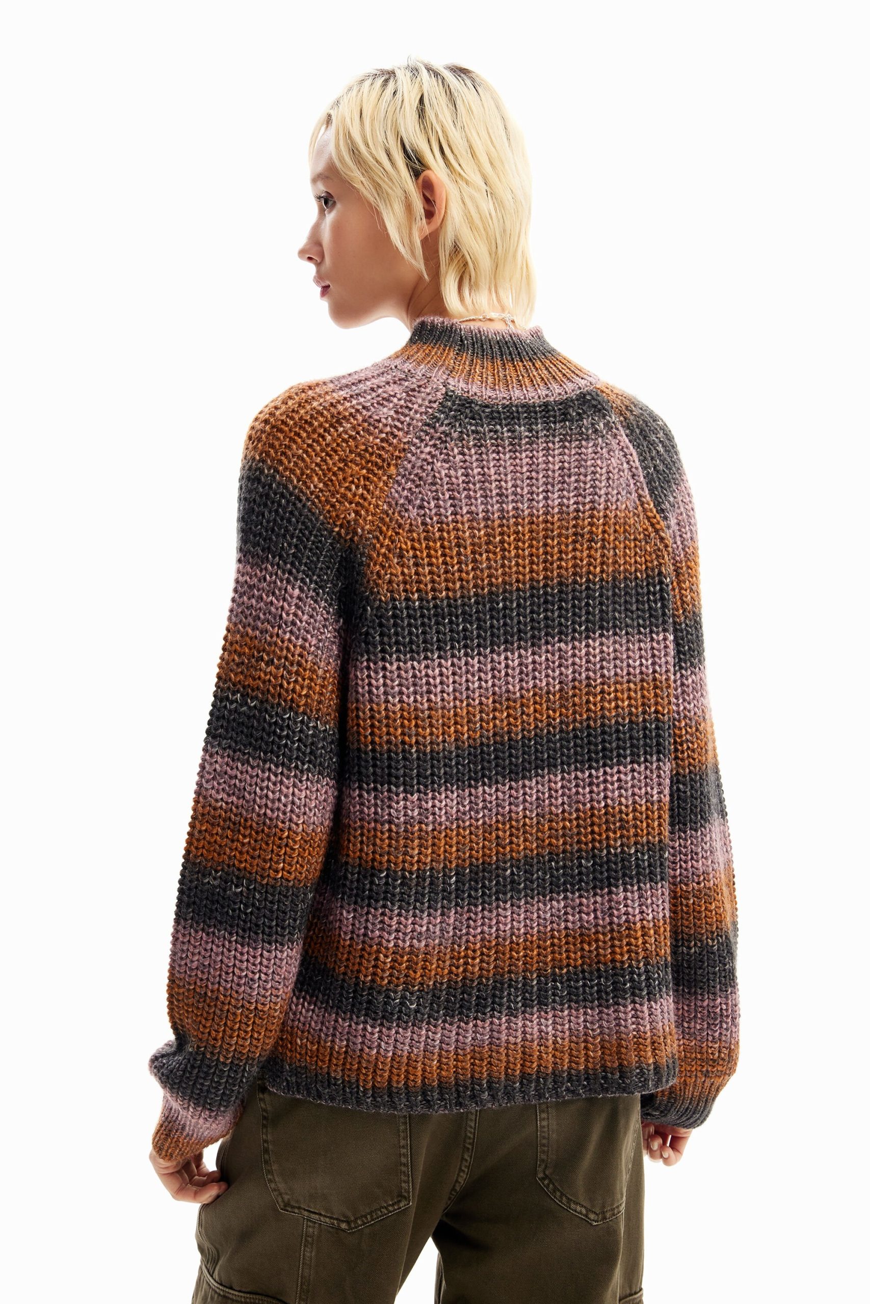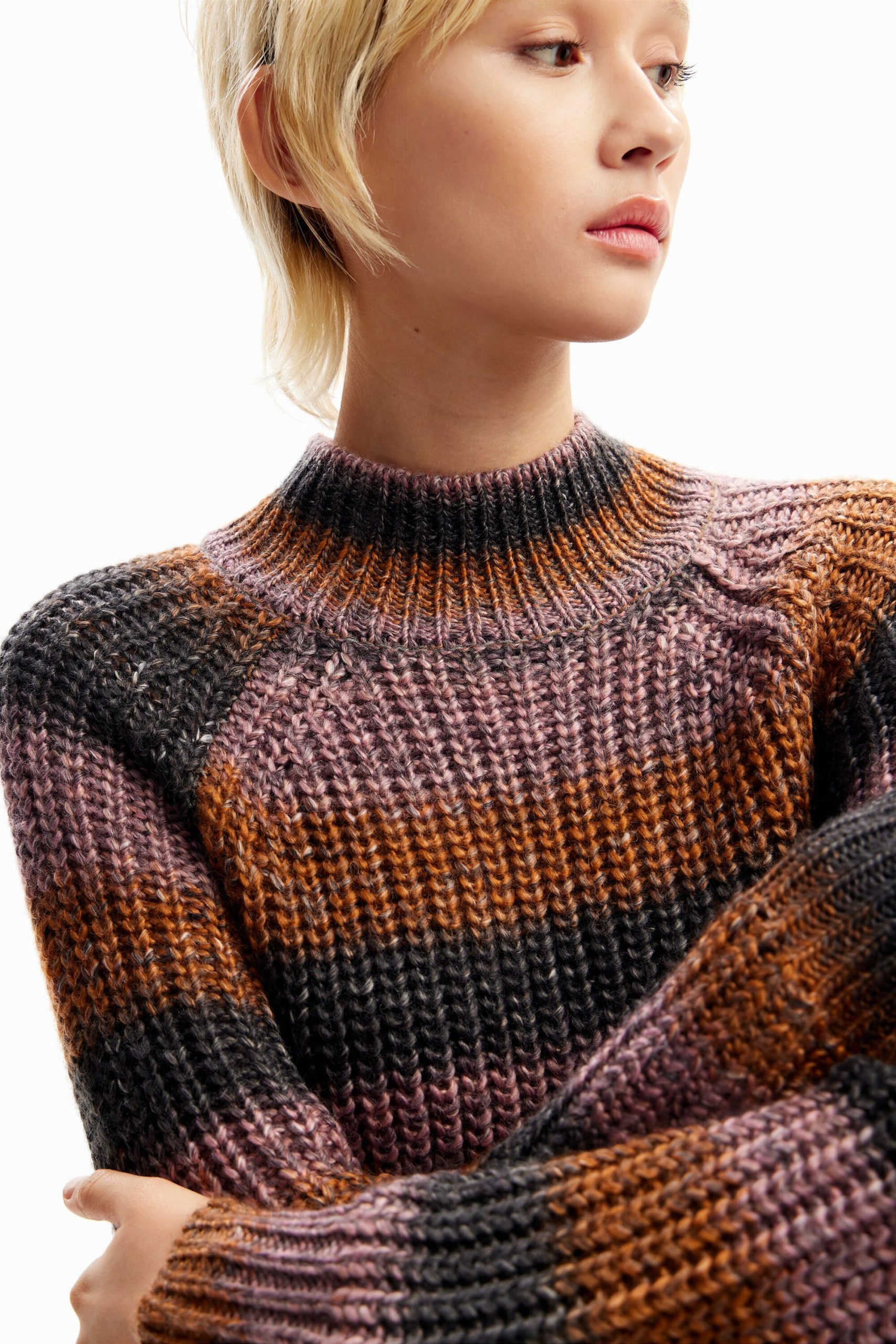 Suéter de manga comprida, gola alta, detalhes de contraste, logótipo.