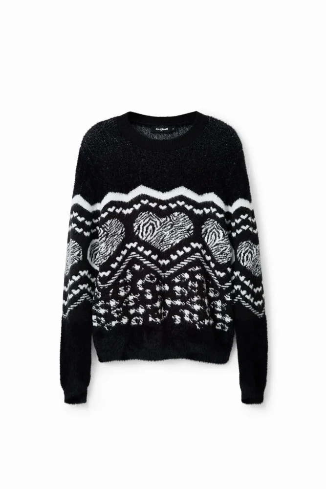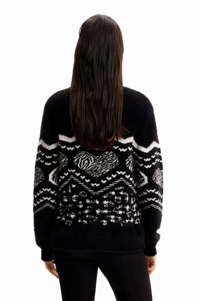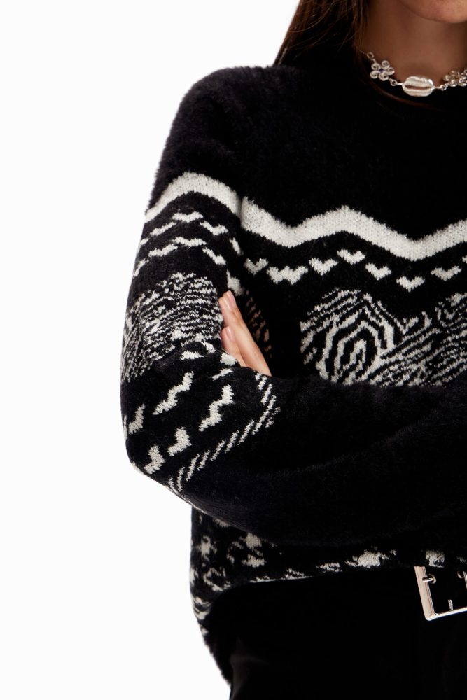 Suéter de manga comprida, gola alta, detalhes de contraste, logótipo.