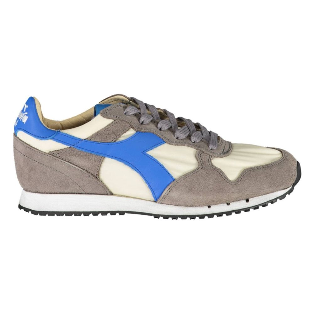 Calçado desportivo com atacadores, detalhes contrastantes, logótipo.