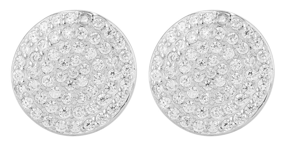 Estes elegantes brincos redondos são feitos de prata de lei 925 e têm uma superfície banhada a ródio para proteger contra manchas. Com um diâmetro de 11 mm e completamente preenchidos com pedras de zircónio radiantes, dão um toque brilhante a qualquer roupa. O fecho fácil de utilizar proporciona apoio e uma sensação de conforto. Este acessório elegante é ideal como um presente de luxo para ocasiões especiais.