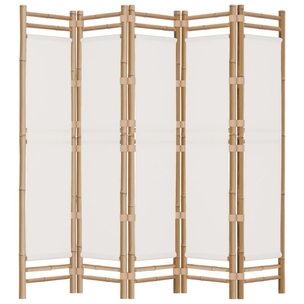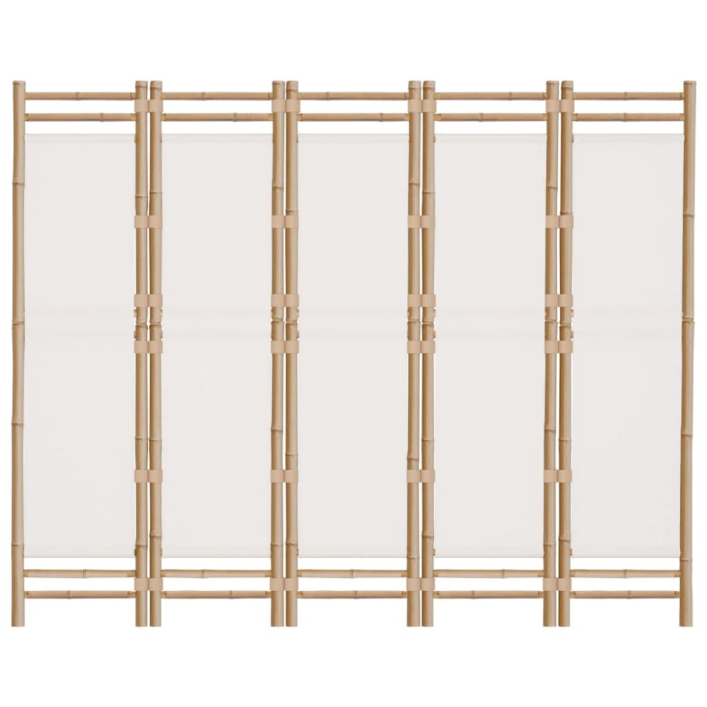 Divisória/biombo com 5 painéis dobráveis 200 cm bambu e lona - PORTES GRÁTIS