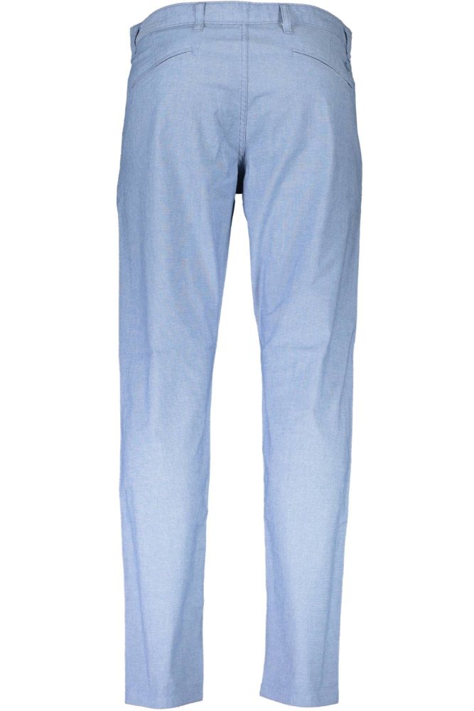 Calças com 5 bolsos, botão, fecho e logótipo.