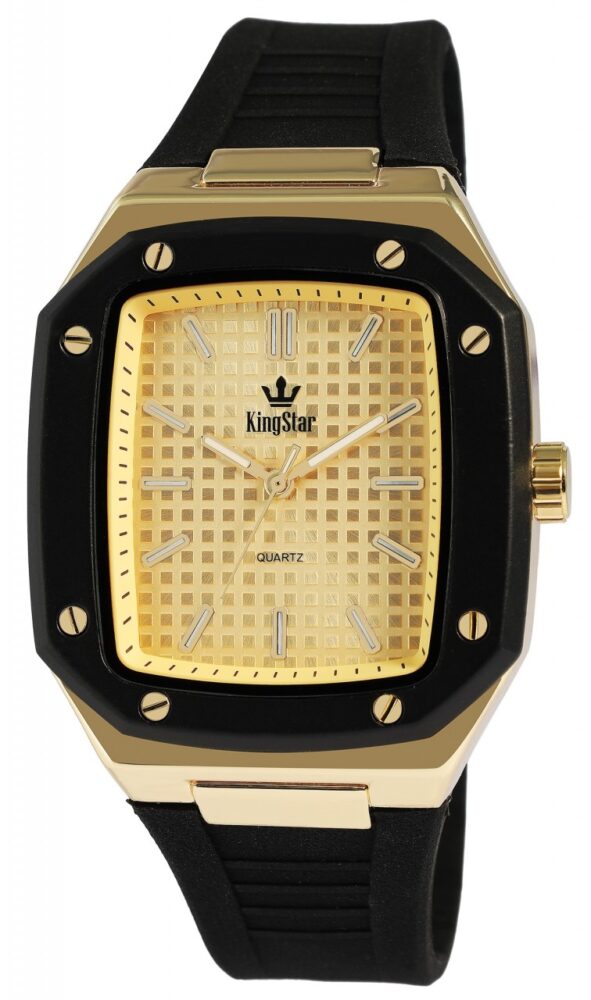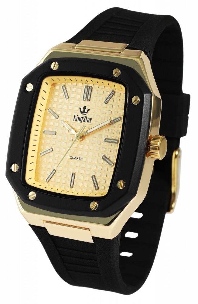 Relógio da marca King Star, um relógio enorme e atraente para o homem jovem de coração. A caixa retangular medindo 44 x 51 mm é feita de metal, a tampa da caixa é feita de aço inoxidável. Além disso, este relógio está equipado com um movimento de quartzo de alta qualidade. O comprimento total do relógio é de 27,5 cm, a pulseira de silicone tem 27 mm de largura no batente. Outros destaques do relógio incluem os ponteiros das horas e dos minutos revestidos com superluminova, bem como o índice de linhas, que garante excelente legibilidade mesmo em condições de pouca iluminação. A confortável pulseira de silicone com fivela garante um ajuste seguro e é confortável de usar.
