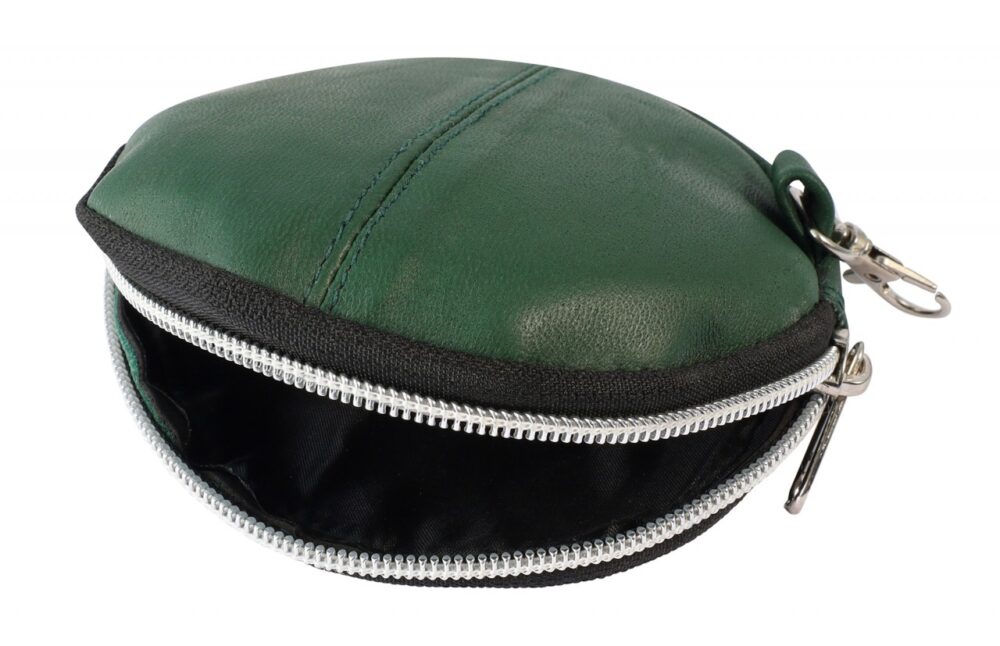 Esta carteira redonda em pele genuína é a companheira ideal para viajar. Com um diâmetro de 11,5 cm e uma altura de 2,5 cm quando vazia, oferece espaço suficiente para guardar todos os seus objectos importantes. A carteira tem um compartimento que fecha com um fecho de correr. A mini carteira também tem um gancho de pressão que pode ser utilizado para prender a carteira à roupa e a uma mala.
