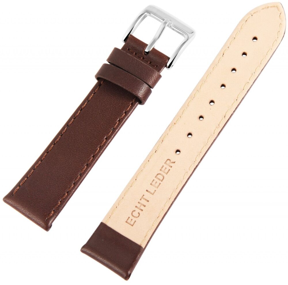 Esta pulseira de relógio feita de couro genuíno de alta qualidade está disponível com larguras de 12 mm, 14 mm, 16 mm, 18 mm, 20 mm, 22 mm, 24 mm, 26mm e 28mm. Oferece uma opção adequada para diferentes modelos de relógios. A pulseira acolchoada é acentuada por uma fina costura e dá ao relógio um visual particularmente elegante.