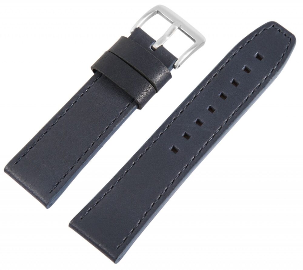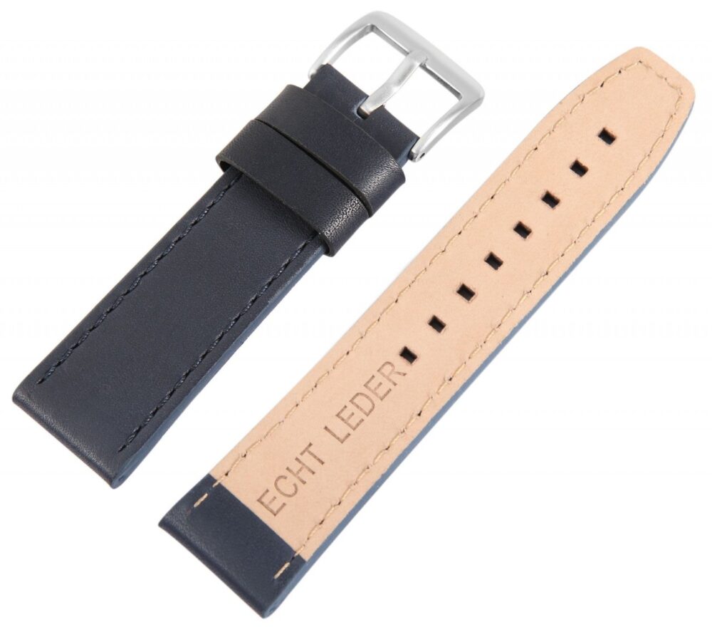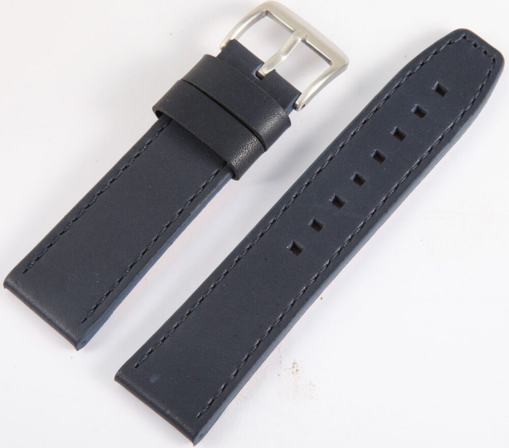 Esta pulseira de relógio feita de couro genuíno de alta qualidade está disponível com larguras de 12 mm, 14 mm, 16 mm, 18 mm, 20 mm, 22 mm, 24 mm, 26mm e 28mm. Oferece uma opção adequada para diferentes modelos de relógios. A pulseira acolchoada é acentuada por uma fina costura e dá ao relógio um visual particularmente elegante.