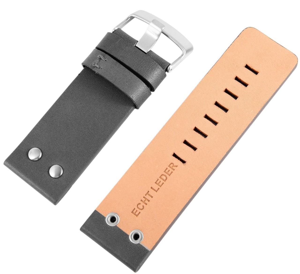 Esta pulseira de relógio feita de couro genuíno de alta qualidade está disponível com largura de 30mm. Oferece uma opção adequada para diferentes modelos de relógios. A pulseira acolchoada é acentuada por uma fina costura e dá ao relógio um visual particularmente elegante.