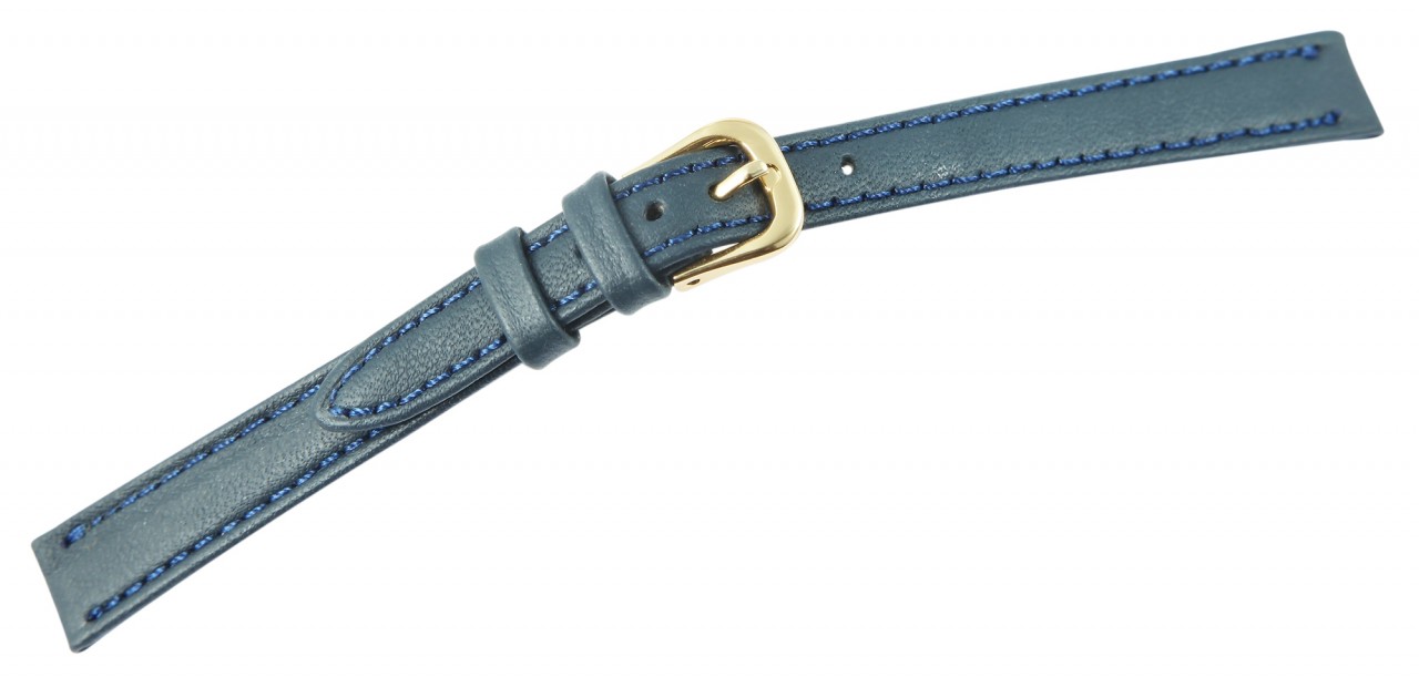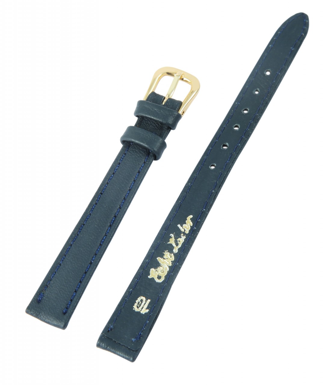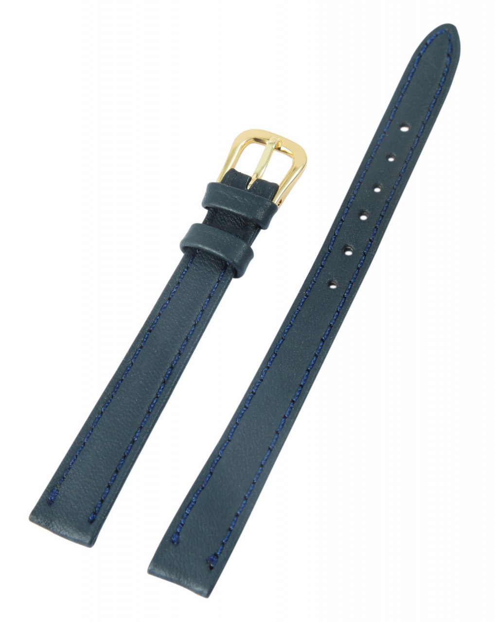 A pulseira do relógio é feita de couro genuíno e está disponível em larguras de 8 mm e 10 mm. Tem uma superfície lisa azul e acabamento com uma fina costura azul. A pulseira de reposição tem uma espessura de material de 2 mm, o comprimento total varia dependendo da largura da saliência. A pulseira do relógio pode ser aberta e fechada usando uma fivela dourada e o primeiro laço é costurado.