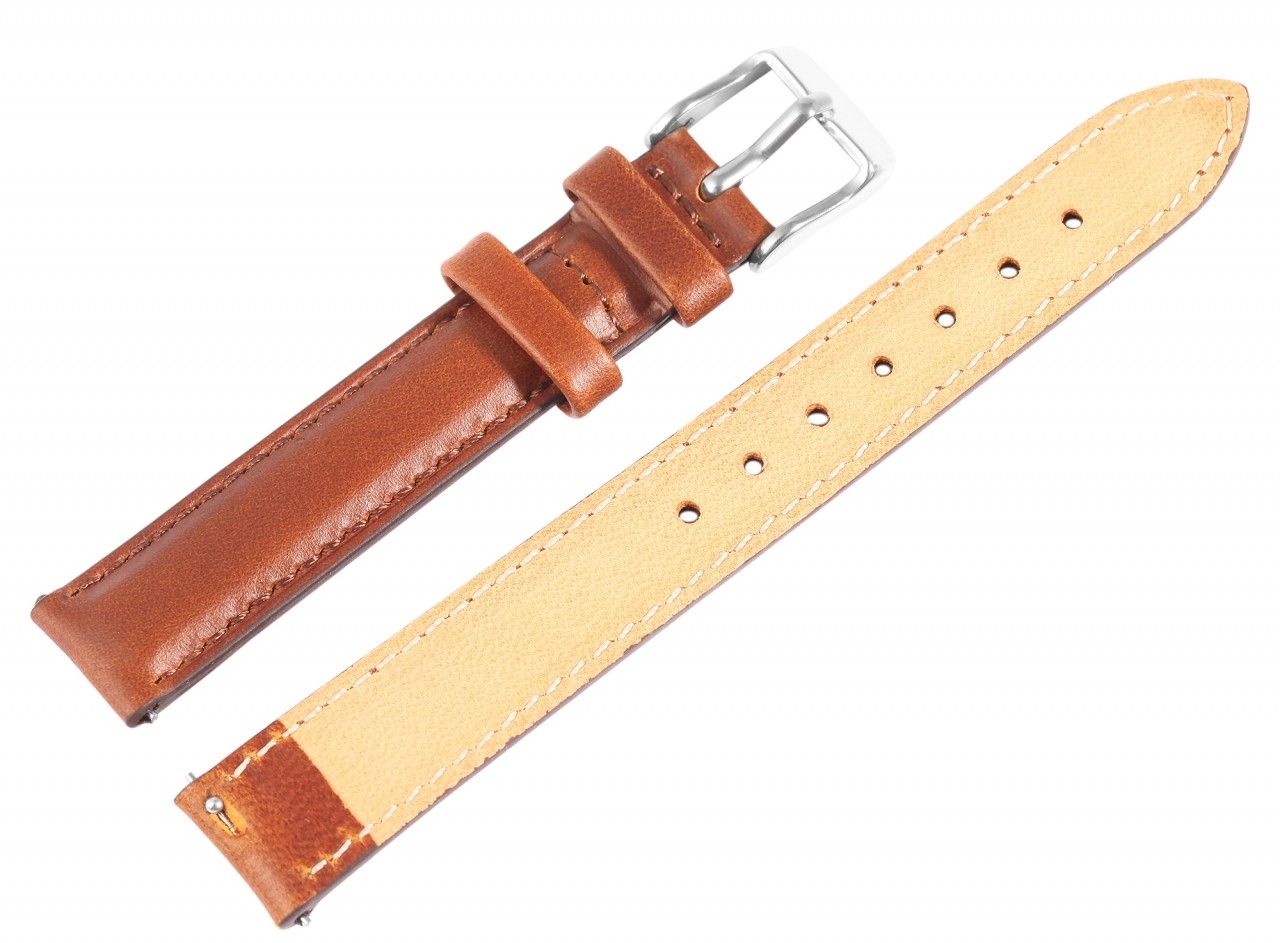 A pulseira marrom do relógio é feita de couro genuíno e está disponível em larguras de 12, 14, 16, 18, 20 e 22 mm. O comprimento total da banda está entre 19,5 cm e 20,5 cm e a espessura do material é de 4 mm. O comprimento depende da largura do talão. A alça do fecho é 2 mm mais estreita que a largura da alça porque a faixa fica mais estreita ali. A pulseira de reposição pode ser aberta e fechada com uma fivela prateada altamente polida. A costura marrom garante boa durabilidade e estabilidade. O acabamento brilhante em combinação com a pulseira de couro liso sublinha o belo design da pulseira do relógio e garante uma colocação e retirada rápida e fácil.