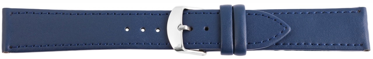 A pulseira azul escura feita de couro genuíno está disponível em larguras de 12 mm, 14 mm, 16 mm, 18 mm, 20 mm, 22 mm, 24 mm e 26 mm. Possui superfície lisa e acabamento com fina costura azul. A espessura do material é de 3 mm. As alças têm comprimento total entre 19,5 cm e 21,5 cm. O comprimento total depende da largura do terminal. A alça do fecho é 2 mm mais estreita que a largura da alça porque a pulseira é afunilada. Pode ser aberto e fechado com uma fivela prateada.