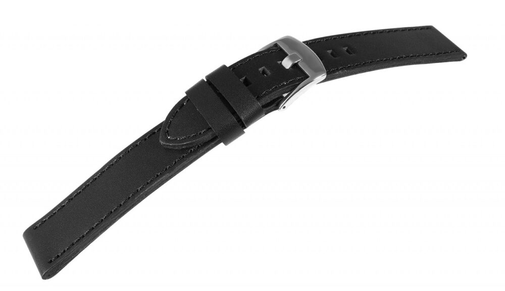 Nossa pulseira de reposição de relógio de alta qualidade é feita de couro genuíno, macio e liso em preto e é decorada com costura preta. Com uma largura de 20 mm, ele se adapta a uma variedade de modelos de relógios. O comprimento total da pulseira é de 23,5 cm, consistindo de um furo com 13 cm de comprimento e um fecho com 10,5 cm de comprimento. Com espessura de 3,5 mm, oferece o equilíbrio perfeito entre robustez e conforto. A fivela prateada e as duas presilhas da pulseira, uma das quais costurada, proporcionam suporte e segurança adicionais. A parte do furo afunila em uma ponta e dá ao design um acabamento elegante. O couro macio…