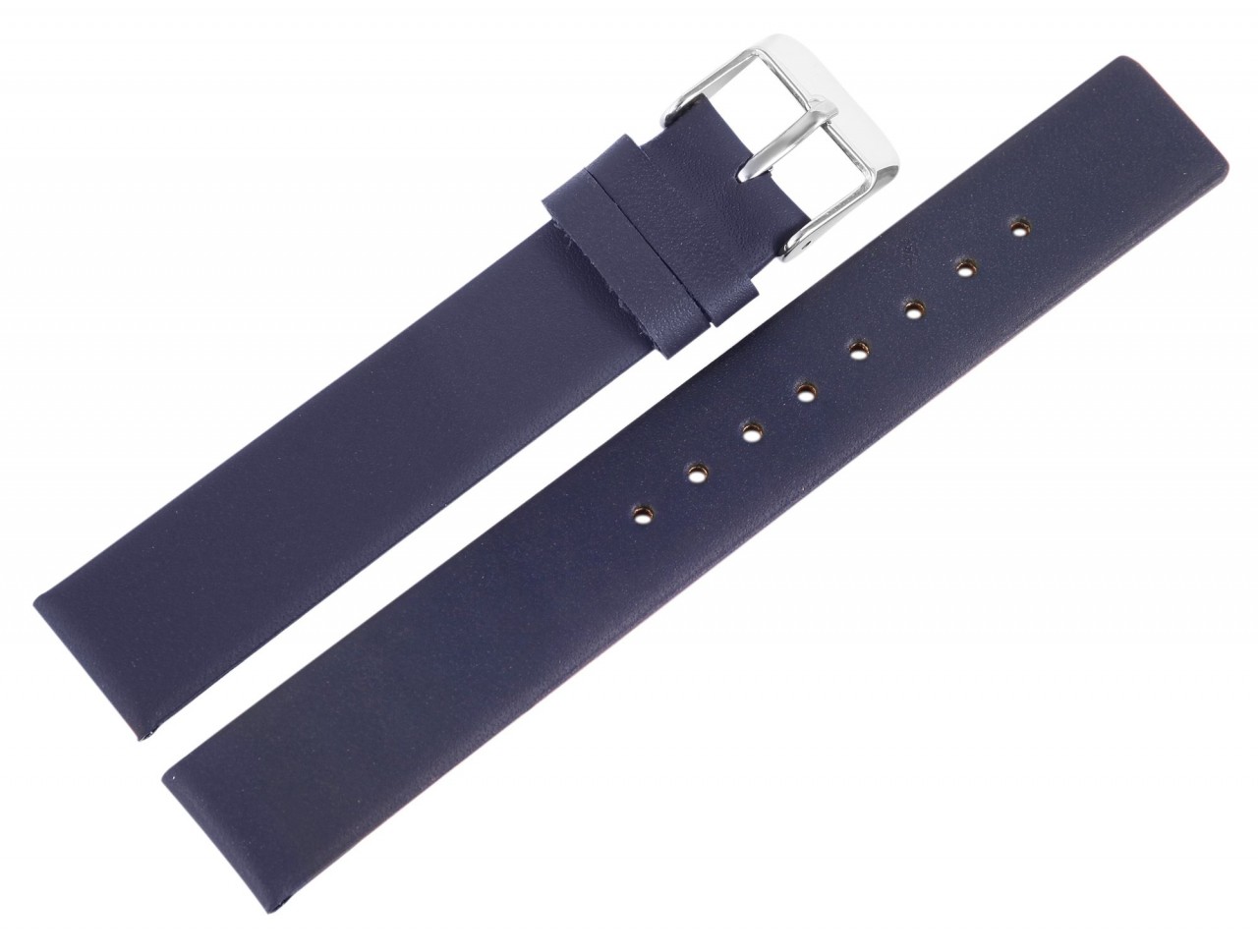 A bracelete azul escura é fabricada em pele genuína. O comprimento total da bracelete situa-se entre 20,5 cm e 22 cm e a espessura do material é de 2 mm. O comprimento depende da largura da argola. A bracelete de substituição pode ser aberta e fechada com uma fivela de pino prateada e altamente polida. O acabamento brilhante em combinação com a bracelete em pele ligeiramente mate realça o belo design da bracelete do relógio e torna-a rápida e fácil de pôr e tirar.