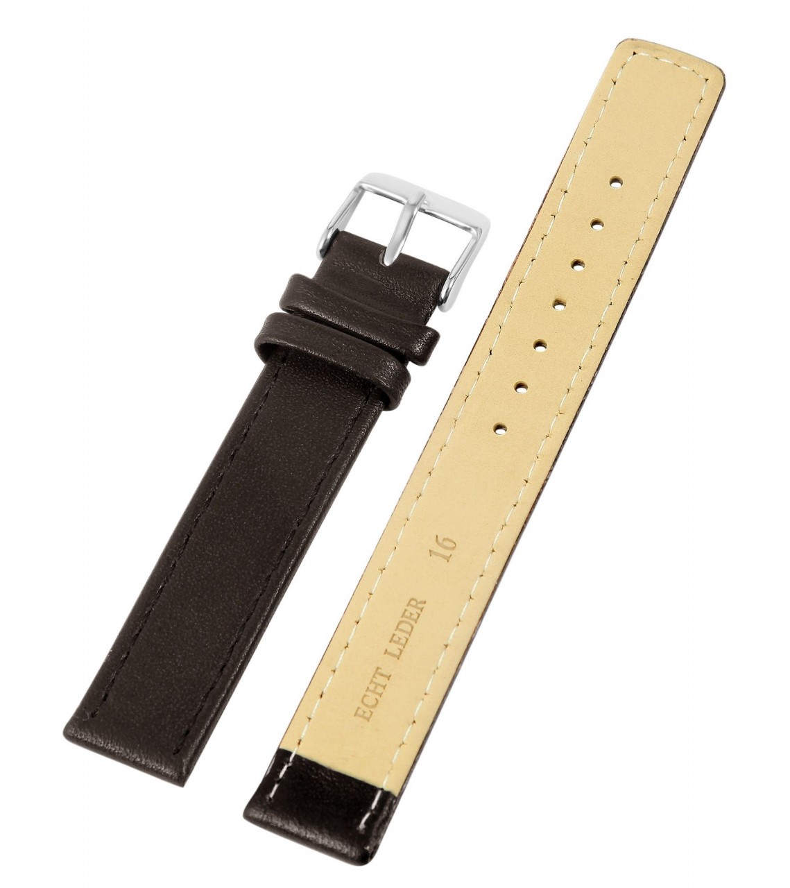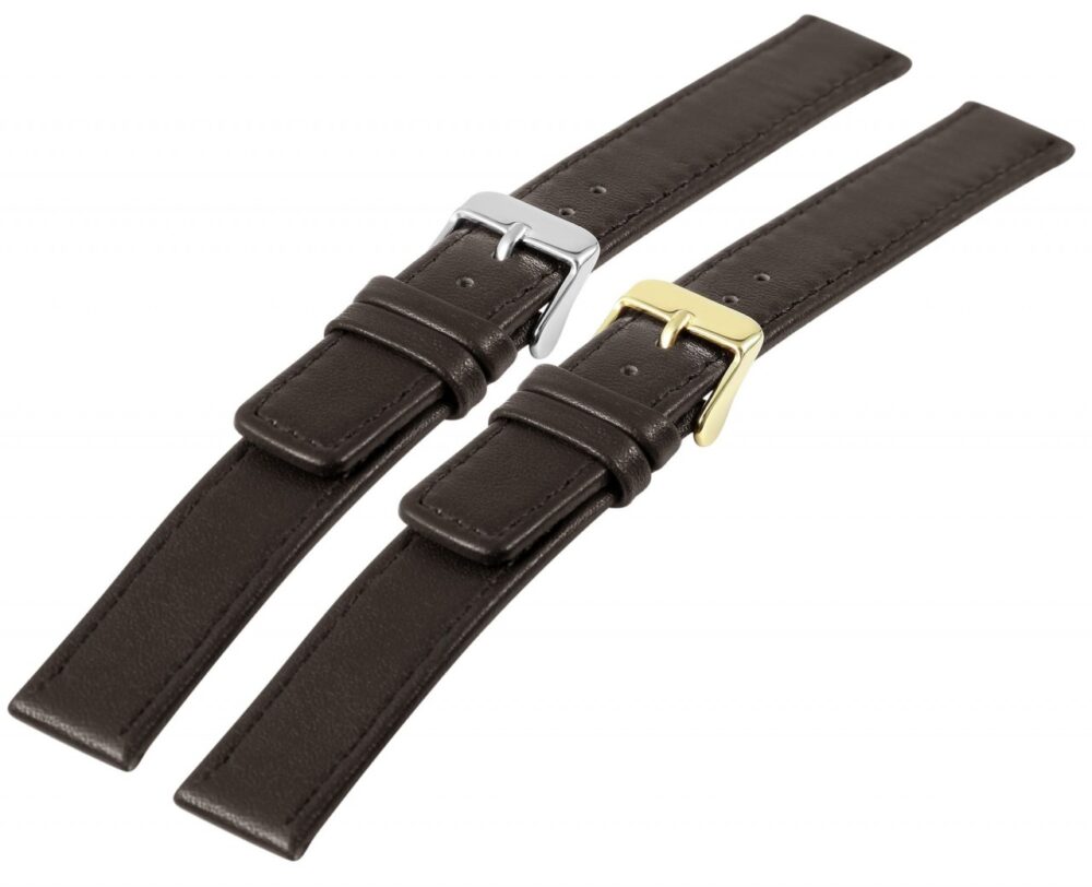 Bracelete de substituição clássica em pele genuína na cor castanha escura.