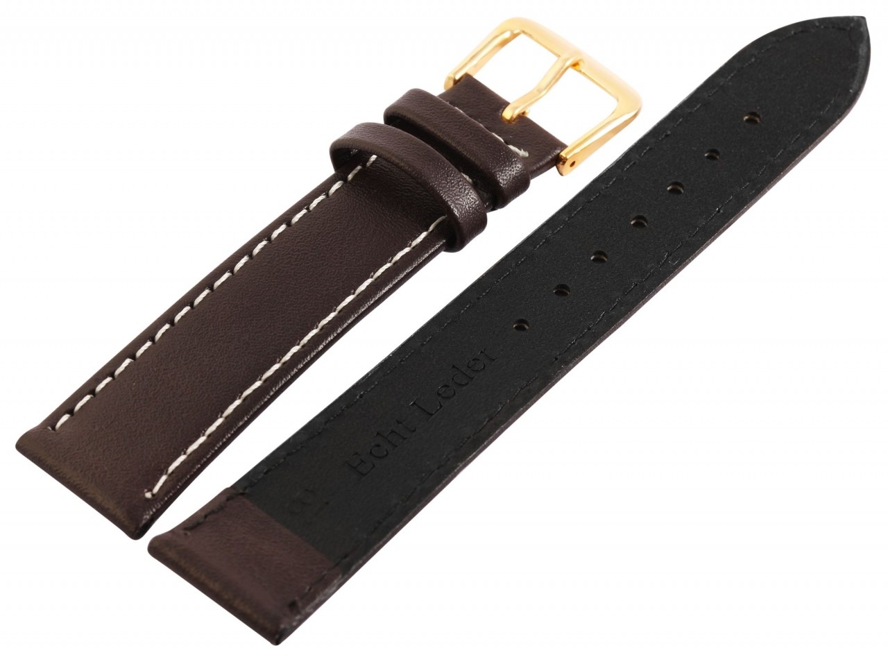 - Bracelete de substituição clássica em pele genuína na cor castanha escura.