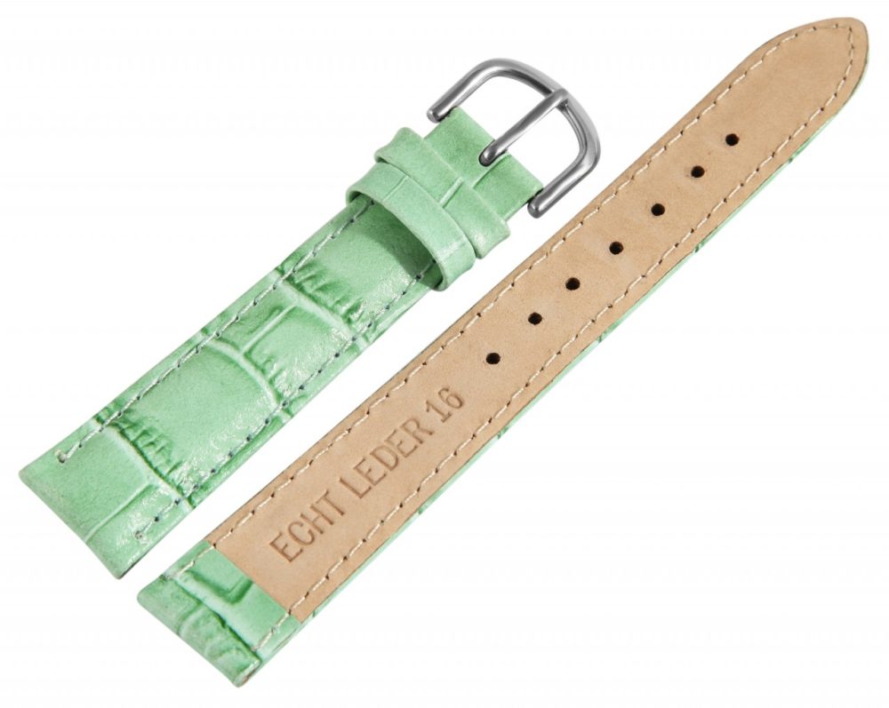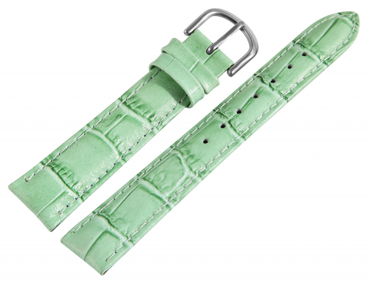 Bracelete em pele genuína, verde, costura verde, 12 – 16 mm