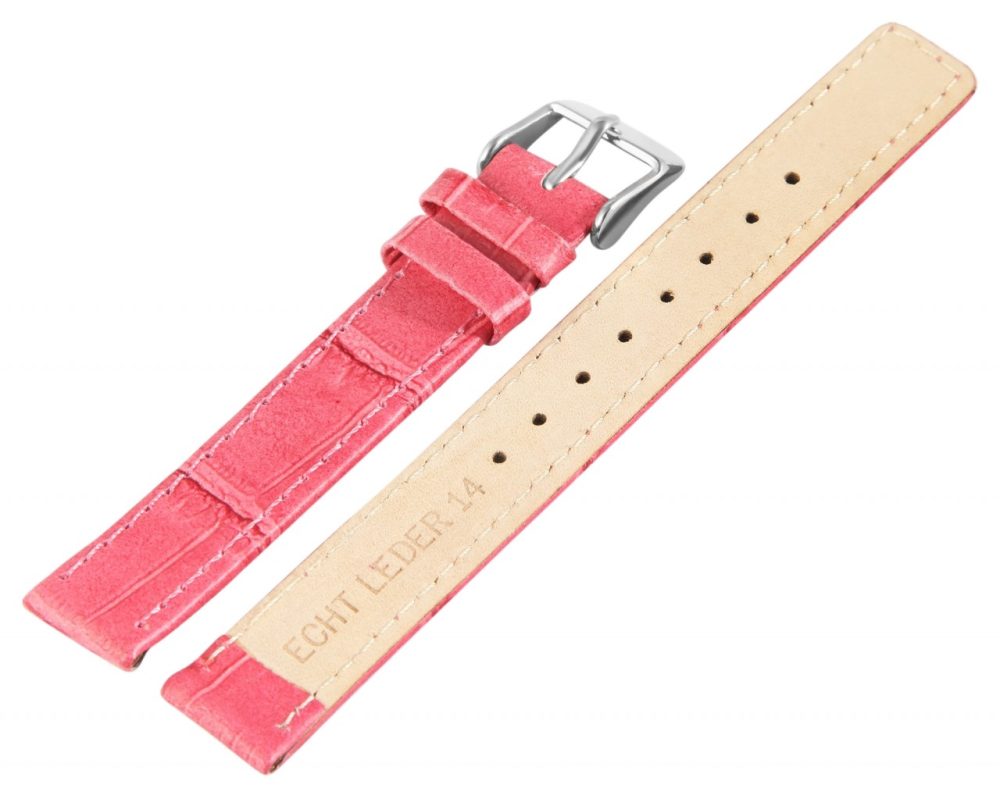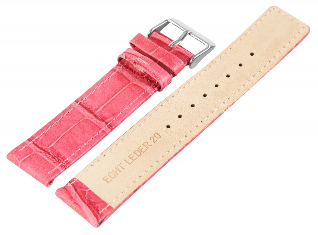 Bracelete em pele genuína cor-de-rosa, 12 – 20 mm