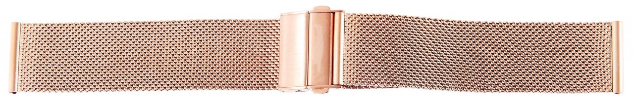A bracelete do relógio milanês em ouro rosa é feita de aço inoxidável e pode ser aberta e fechada com um fecho dobrável em aço inoxidável. A bracelete de substituição é muito confortável de usar graças ao seu design especial e pode ser perfeitamente ajustada a qualquer pulso graças ao ajuste fino. O comprimento total da bracelete do relógio é de 18 cm. A bracelete milanesa está disponível em larguras de 14 mm, 16 mm, 18 mm, 20 mm, 22 mm e 24 mm. A alça é reta e, portanto, compatível com todos os relógios. A bracelete milanesa torna cada relógio um destaque visual.