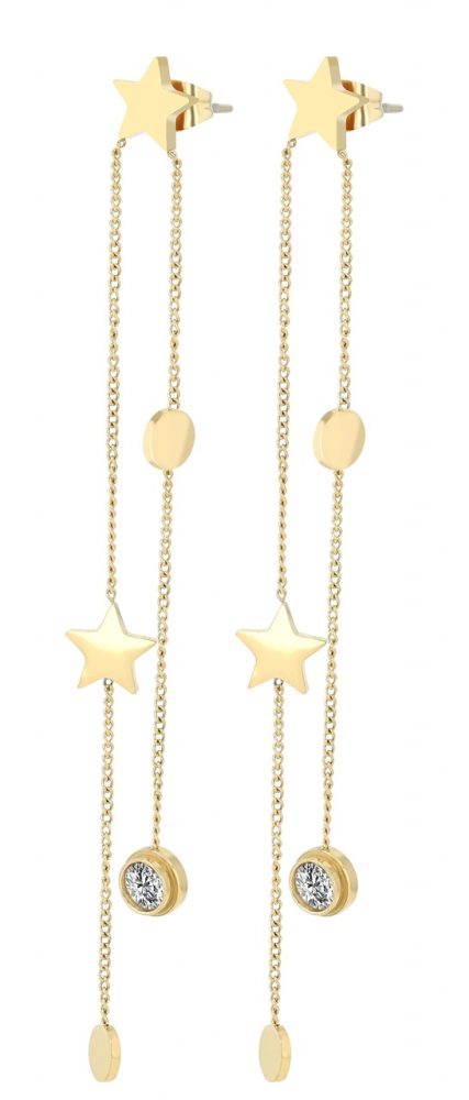 Brincos em aço inoxidável dourado com pingente.