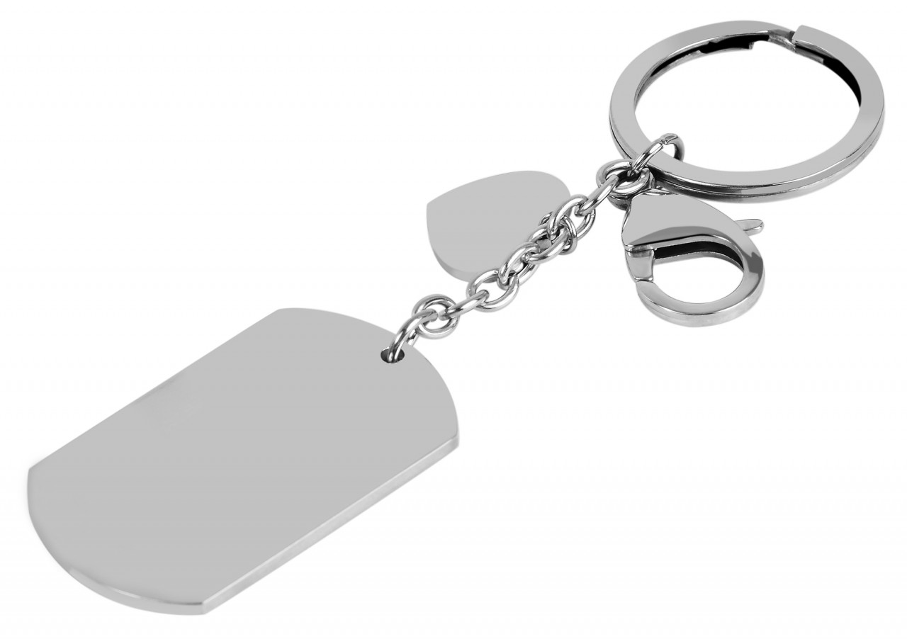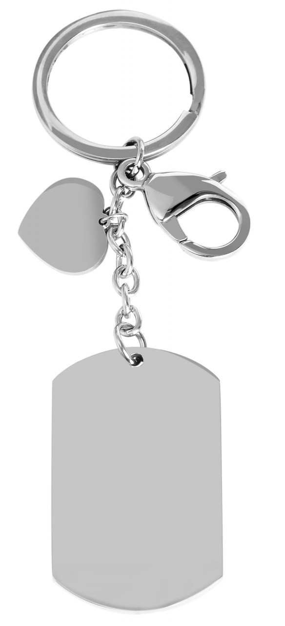 O chaveiro da marca Accent é altamente polido e feito de aço inoxidável. É perfeito como presente personalizado, pois o pingente é uma placa de gravação altamente polida com comprimento de 46 mm, largura de 28 mm e espessura de material de 2 mm. O pingente pode ser gravado em ambos os lados e é muito robusto porque é feito de aço inoxidável. O pingente é preso ao chaveiro com uma corrente de âncora redonda de 45 mm de comprimento. Tem um diâmetro de 30 mm e também é feito de aço inoxidável e é muito robusto. Há também outro pingente em forma de coração pendurado na corrente. Também é feito de aço inoxidável, altamente polido e pode ser gravado em ambos os lados. Tem 15 mm de comprimento, 18 mm de largura e 1,5 mm de espessura.