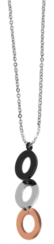 O conjunto de jóias Akzent é feito de aço inoxidável e é composto por brincos e uma corrente. A corrente de âncora tem 43 cm de comprimento, 1 mm de largura e 1 mm de espessura. Uma corrente de extensão de 5 cm está também ligada à extremidade da corrente, permitindo-lhe variar o comprimento até 5 cm e adaptá-la a qualquer roupa. A corrente pode ser aberta e fechada com um mosquetão robusto em aço inoxidável. O pendente da corrente de âncora é composto por três elementos de aço inoxidável de forma oval e empilhados nas cores dourado, prateado e ouro rosa. Estes são altamente polidos e abrem-se no centro. O pendente mede 4,5 cm de comprimento, 11 mm de…