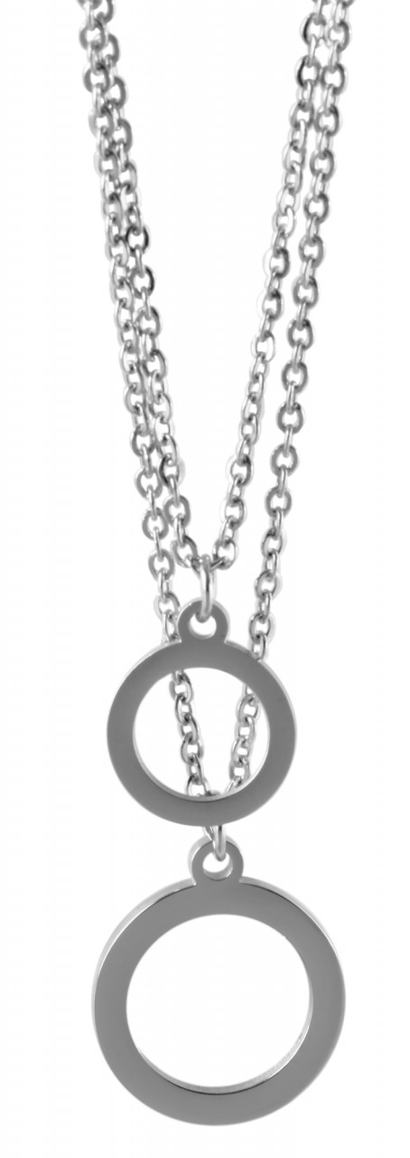 O conjunto de joias da marca Praktik é feito de aço inoxidável e é composto por brincos e uma corrente. A corrente de âncora de duas carreiras tem 43 cm de comprimento, 1 mm de largura e 1 mm de espessura. Uma corrente de extensão de 3 cm de comprimento é fixada em uma extremidade da corrente, o que permite variar o comprimento em até 5 cm. A primeira fila de correntes é decorada com um pingente redondo. É aberto no meio e tem diâmetro de 11 mm e espessura de 1 mm. A segunda fila também é decorada com o mesmo pingente. Tem um diâmetro de 20 mm e uma espessura de 1 mm. A corrente pode ser aberta e fechada com um mosquetão resistente de aço inoxidável. Os brincos correspondentes têm um diâmetro de 11,5 mm e uma espessura de 1 mm.