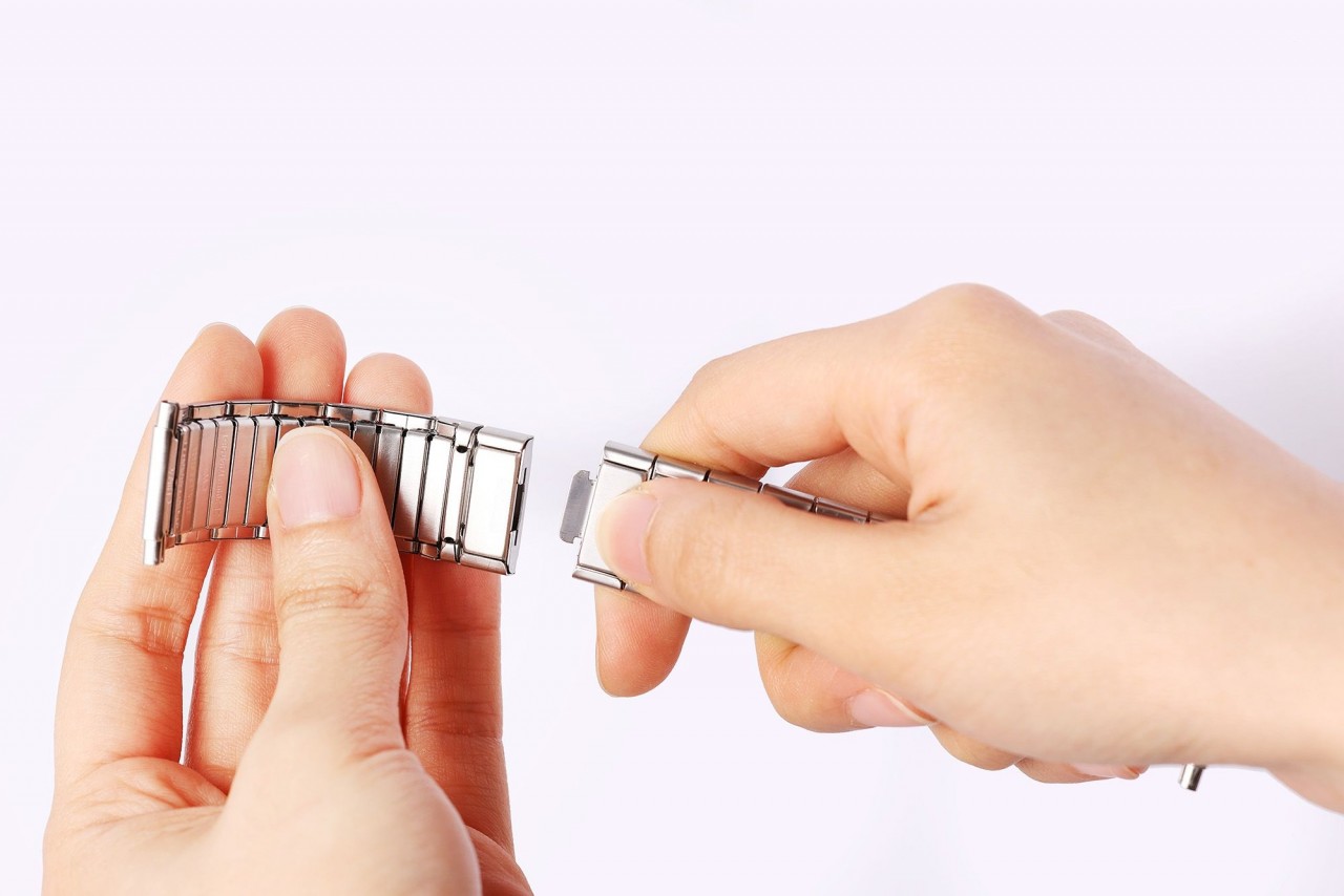 A pulseira moderna e lindamente polida com um fecho flexível é uma adição elegante a qualquer relógio com um tamanho de talão de 1,8 cm ~ 2,3 cm ou 2,0 cm ~ 2,6 cm e um comprimento de 16,4 cm. Cada elo da pulseira tem uma parte lateral polida e duas listras posicionadas centralmente, enquanto a superfície restante é dominada por um relevo xadrez muito fino. Tal como acontece com todas as pulseiras, a flexibilidade familiar das pulseiras garante um ajuste perfeito na maioria dos tamanhos de pulso.