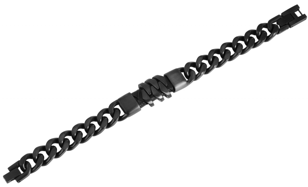 A pulseira de aço inoxidável da marca Akzent é feita de 14 elementos sólidos de aço inoxidável. Os elementos clássicos da corrente formam o padrão de armadura plana. A pulseira de joias está disponível em prateado e preto. A pulseira masculina pode ser aberta e fechada com um fecho de clipe, também feito de aço inoxidável. É possível encurtar a pulseira em 1 cm utilizando um elemento removível na fechadura. As dimensões do atrativo da moda são comprimento total de 21 cm, largura de 17 mm e espessura de 10 mm. Um destaque visual é o elemento de aço inoxidável e couro com aproximadamente 6 cm de comprimento integrado no meio. Existem três elementos móveis de aço que refletem os elementos da corrente da pulseira. A pulseira robusta é o acessório perfeito para qualquer ocasião e é um ótimo presente para seus entes queridos.