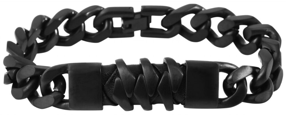 A pulseira de aço inoxidável da marca Akzent é feita de 14 elementos sólidos de aço inoxidável. Os elementos clássicos da corrente formam o padrão de armadura plana. A pulseira de joias está disponível em prateado e preto. A pulseira masculina pode ser aberta e fechada com um fecho de clipe, também feito de aço inoxidável. É possível encurtar a pulseira em 1 cm utilizando um elemento removível na fechadura. As dimensões do atrativo da moda são comprimento total de 21 cm, largura de 17 mm e espessura de 10 mm. Um destaque visual é o elemento de aço inoxidável e couro com aproximadamente 6 cm de comprimento integrado no meio. Existem três elementos móveis de aço que refletem os elementos da corrente da pulseira. A pulseira robusta é o acessório perfeito para qualquer ocasião e é um ótimo presente para seus entes queridos.