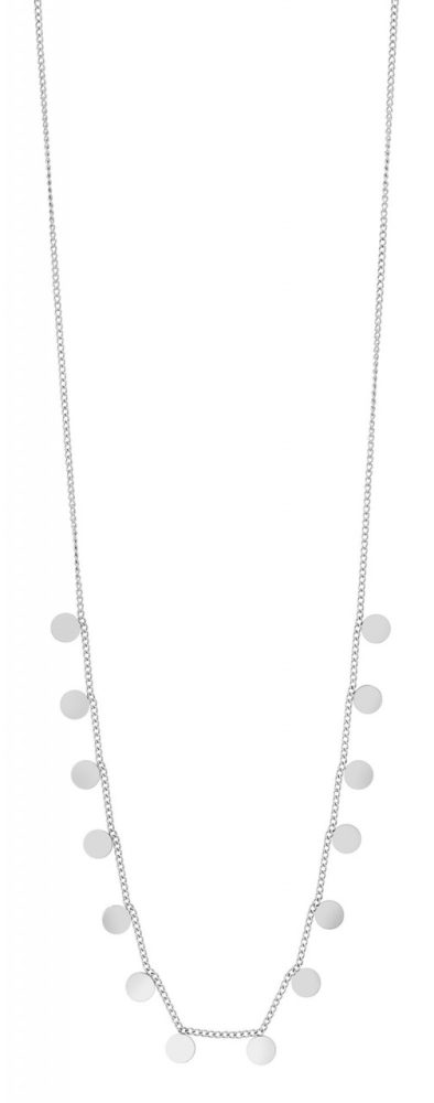 Colar em aço inoxidável prateado com pingentes. Dimensões: 40 + 5 cm.