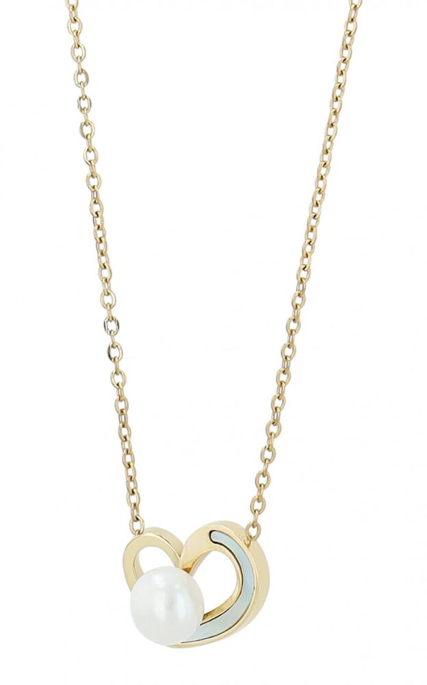 Este elegante colar de aço inoxidável combina romance e elegância atemporal. O encantador pingente de coração é parcialmente coberto com madrepérola brilhante, que destaca particularmente o branco brilhante da pérola de água doce incrustada. Com um comprimento de corrente de 42,5 cm e uma extensão adicional de 5 cm, a joia se adapta perfeitamente a qualquer decote. Disponível em prata elegante ou ouro brilhante, este colar oferece um visual luxuoso e define detalhes sofisticados – ideal para amantes de joias que se preocupam com o estilo.