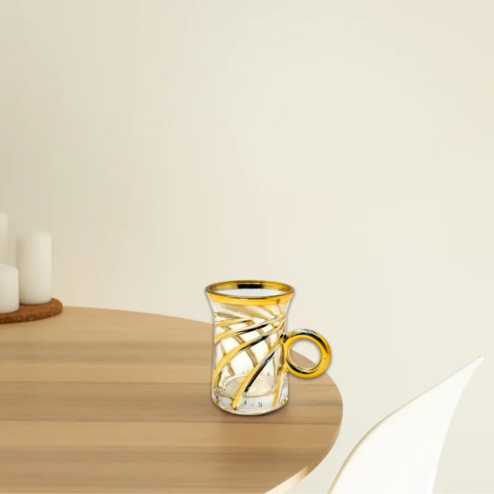 Fabricadas para durabilidade e apelo estético, estas chávenas de vidro para café expresso são leves mas resistentes, garantindo uma utilização duradoura. O seu tamanho compacto é ideal para os amantes do café expresso, realçando os sabores e o aroma arrojados do café em cada gole. A pega ergonómica com rebordo dourado proporciona uma aderência confortável, tornando-a fácil de segurar enquanto saboreia a sua bebida favorita. Com um corpo elegante e transparente, estas chávenas mostram lindamente os ricos tons do seu café, adicionando um deleite visual ao seu ritual de café.